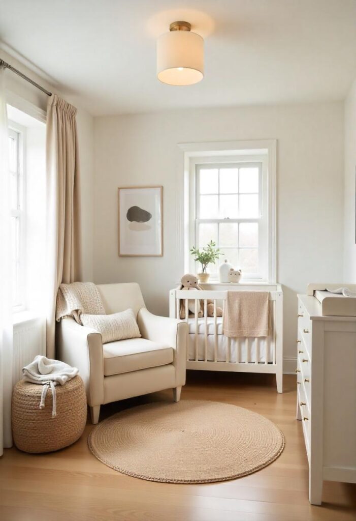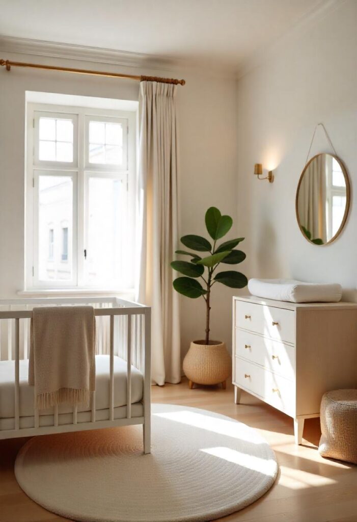 A timeless nursery begins with calm colors that create a soft and airy mood. Shades like ivory, greige, and warm beige pair well with light woods and natural fabrics. Linen curtains, wool rugs, and clean-lined cribs help create a room that feels both soothing and flexible. These color schemes work especially well for parents who want a space that won’t feel outdated in a year. The look is balanced, warm, and never overdone.