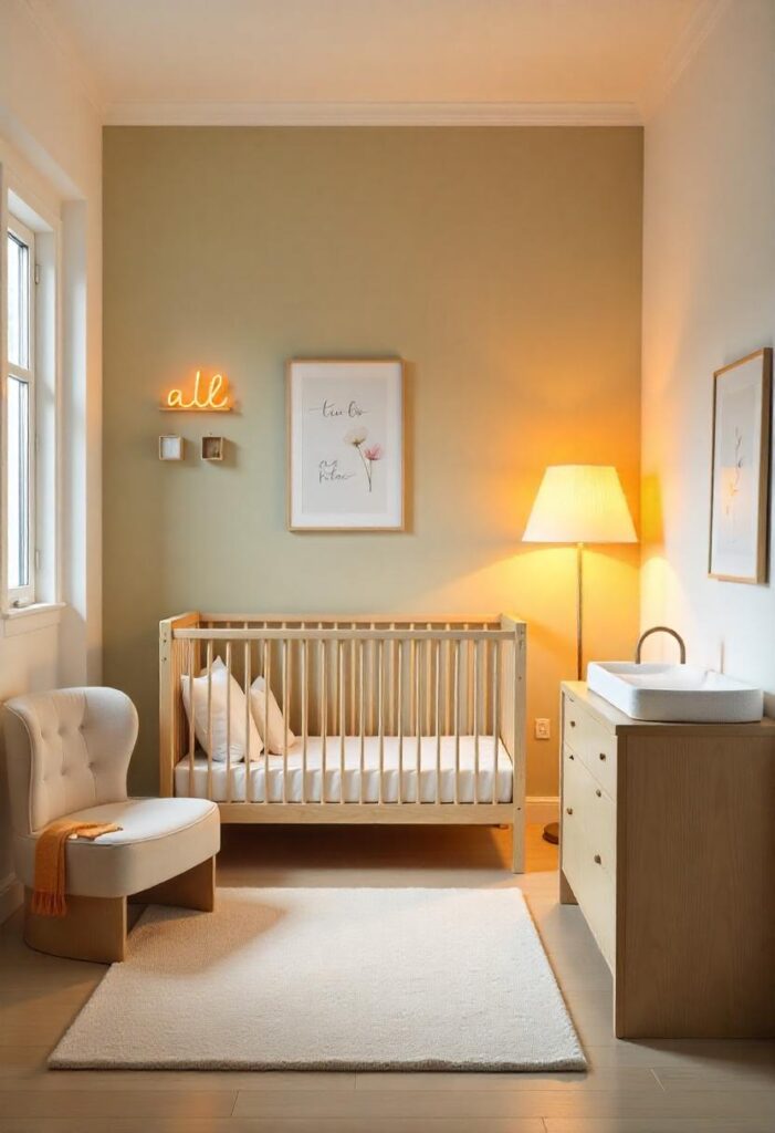 Lighting sets the emotional tone of the nursery, especially in the evening hours. Warm-toned lamps, dim wall sconces, and gentle nightlights help with nighttime care. The glow from warm bulbs enhances neutral palettes and turns simple corners into cozy spots.This works naturally with gender neutral nursery colors that support calm energy. The lighting becomes part of the routine. It’s one of those quiet details that makes a big difference.
