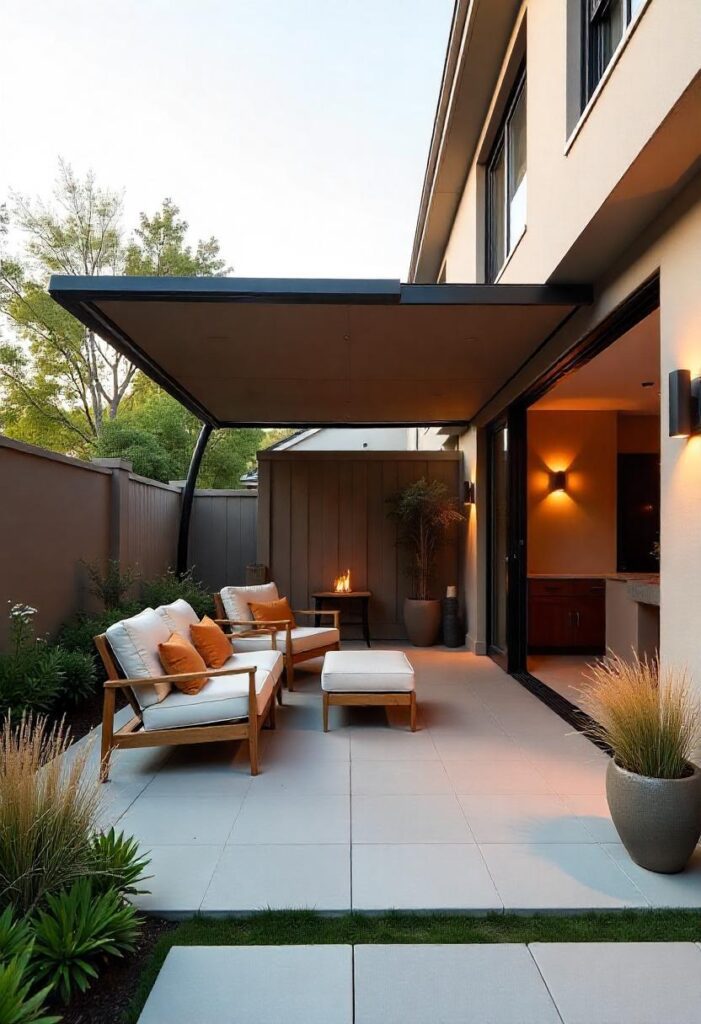 Replacing traditional doors with a full-width sliding glass wall blurs the line between indoors and out. When the flooring materials are coordinated on both sides, the effect is seamless and expansive. A retractable awning above offers flexible shelter, while lounge furniture beneath it extends the living area outdoors. Natural light fills the home, and the patio becomes a continuation of the interior rather than a separate space. It’s a subtle transformation with lasting impact.