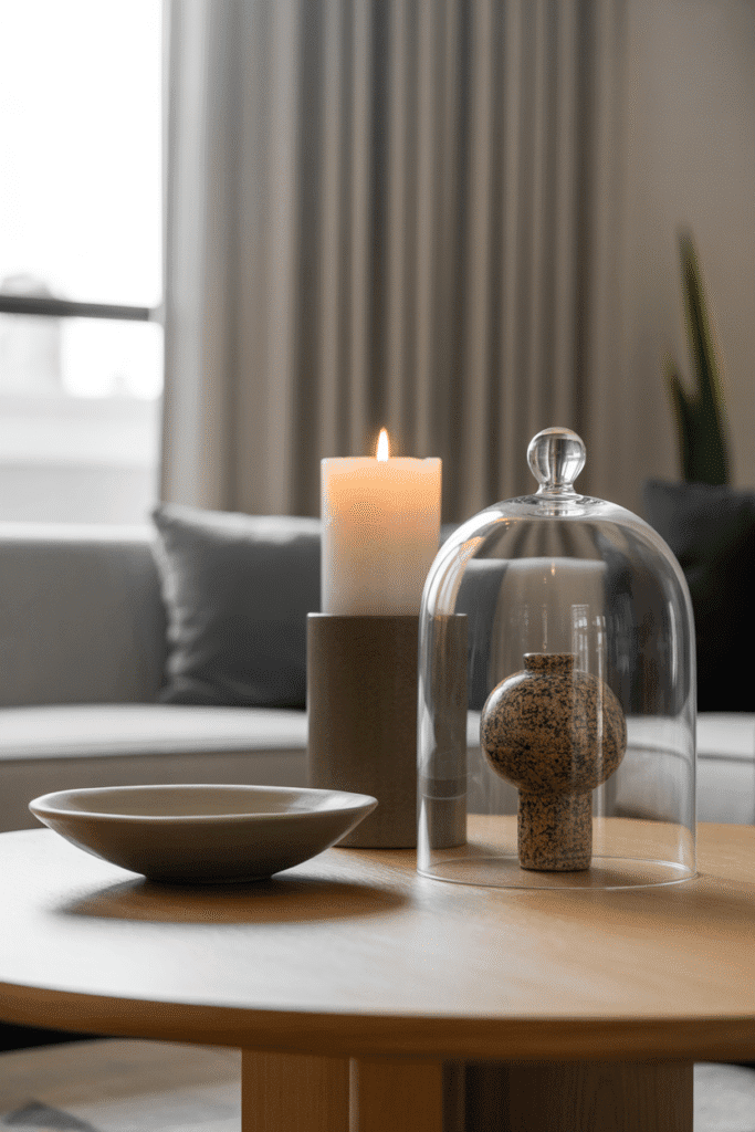 Candles bring warmth, and when grouped, they create intimacy. Use three to five candles of varying shapes but in the same color family. Cluster them on one side of the table, and balance the opposite side with a bowl or tray. This setup is perfect for relaxed evenings when atmosphere matters most.