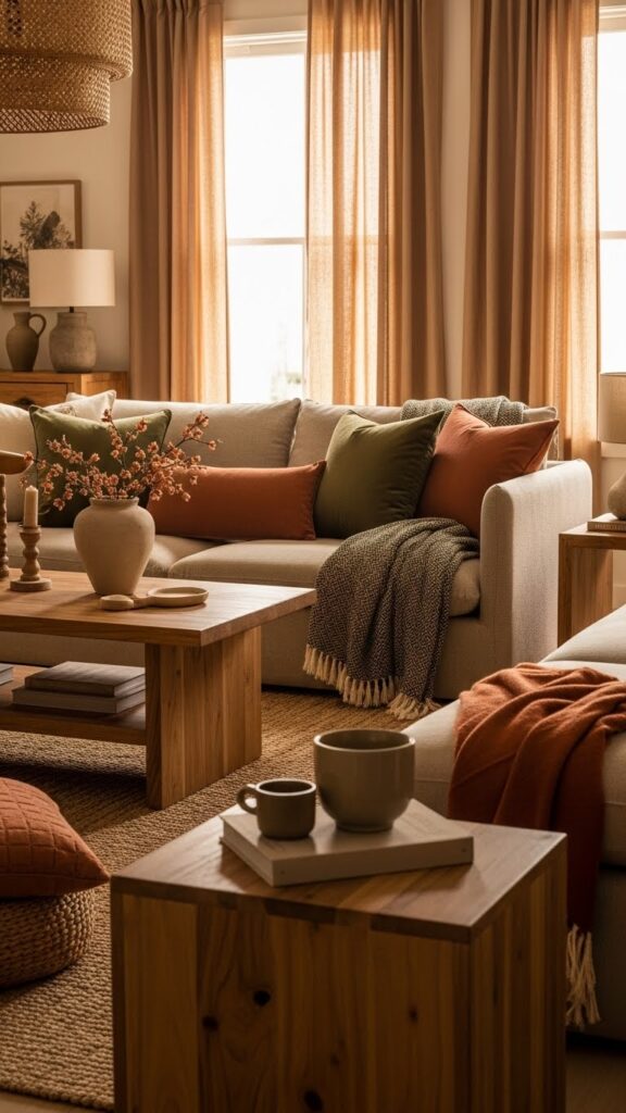 Earthy tones immediately make a home feel grounded and soothing. Colors like warm beige, mocha brown, clay, olive, rust, and gentle tans bring a natural calmness into the room. These colors work beautifully in cushions, curtains, area rugs, bedding, and wall art. Earth tones create harmony and balance, making your home feel warm regardless of the season. Even adding a few accessories in these shades can shift the entire atmosphere of the room.
