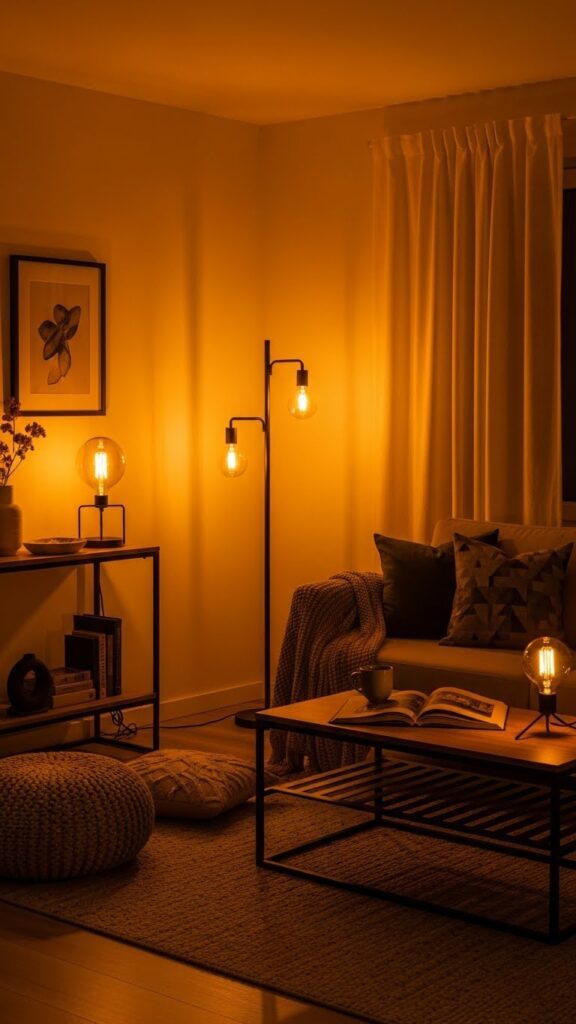 2. Swap Overhead Lights for Soft, Warm Lamps