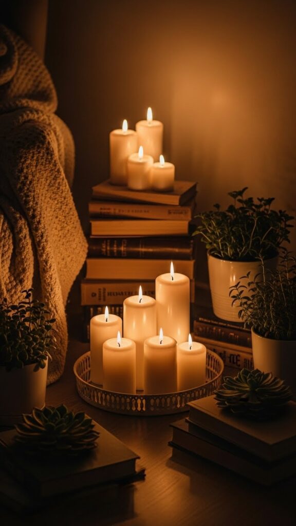 Candles bring warmth through light and scent. Cluster different-sized candles on trays, shelves, or tables to create a soft glow around the room. Choose fragrances like vanilla, amber, sandalwood, or cinnamon for a comforting aroma that enhances the cozy atmosphere. Candlelight shifts the mood instantly, giving your home a calm and intimate feel. Even a small cluster can transform the ambiance of an entire room.