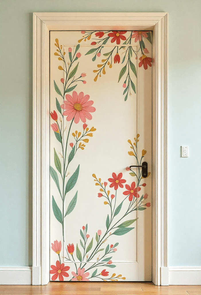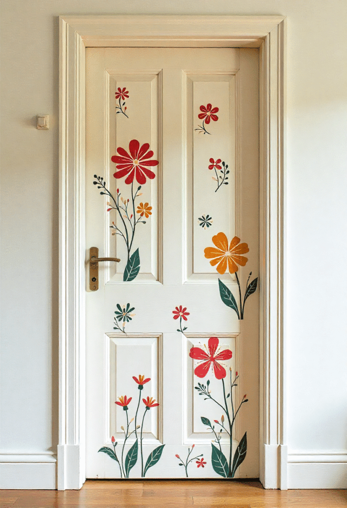 If you love intricate patterns, stenciling your door is a great way to infuse your room with personality. From floral motifs to modern geometric shapes, stenciling allows you to create a unique design that perfectly matches your room’s style. This technique is ideal for those who want a personalized, artistic touch without needing advanced skills. Simply choose your favorite pattern, grab a stencil, and get started—it’s an easy way to transform a plain door into a creative statement piece.