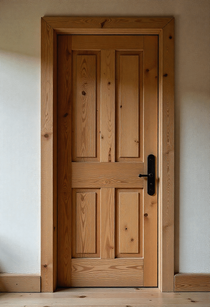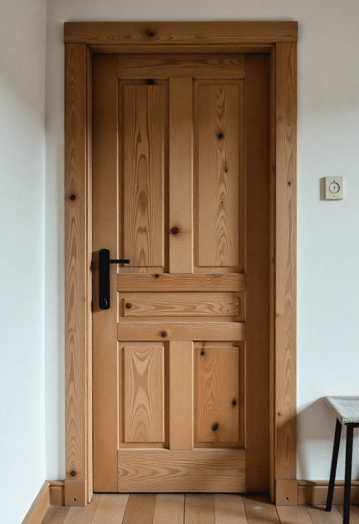 If you’re seeking a more natural, rustic look, wooden panels are a perfect choice. A door made from reclaimed wood or featuring a polished wooden finish brings an earthy warmth to your room. Wooden doors can fit a variety of interior themes, from farmhouse and rustic to contemporary. Whether you prefer the raw charm of reclaimed wood or the sleek appearance of finely finished timber, a wooden-panel door offers timeless elegance and a cozy atmosphere.