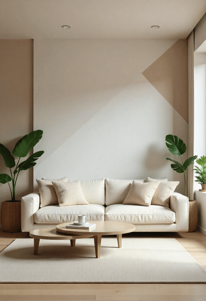 6. Geometric Accent Wall Living Room