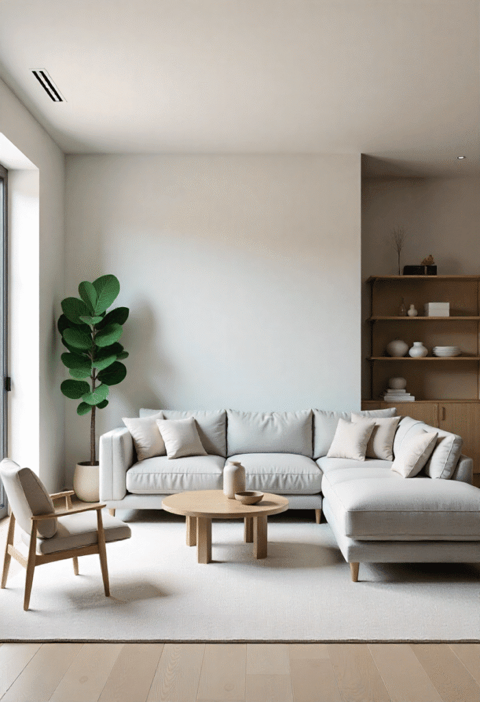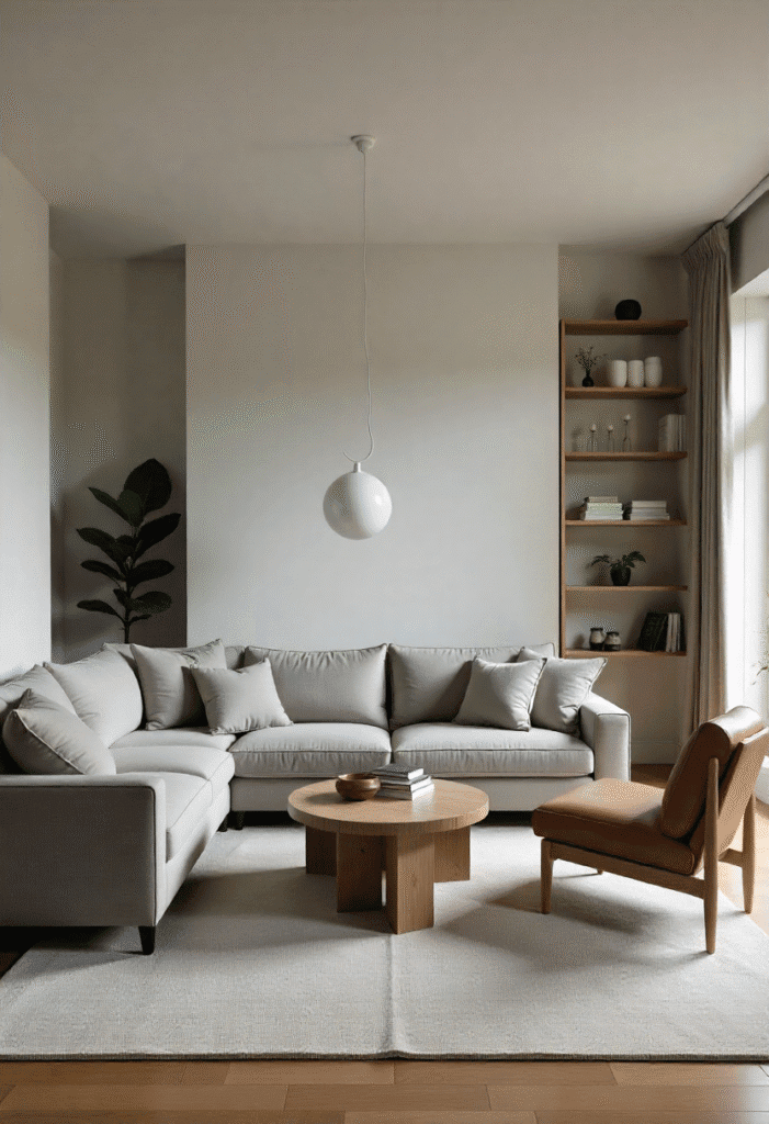 For a minimalist living room that feels open and spacious, go for low-profile furniture. A sleek, modern sofa and low-sitting armchairs will give the room a relaxed vibe, while light beige or grey walls keep the space feeling fresh and airy. Open shelving keeps the room uncluttered, and one or two statement accessories like a sculptural light fixture or a minimalist rug can elevate the space without overwhelming it.
