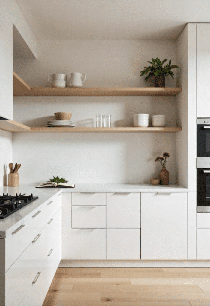3. Floating Shelves & Hidden Storage Kitchen