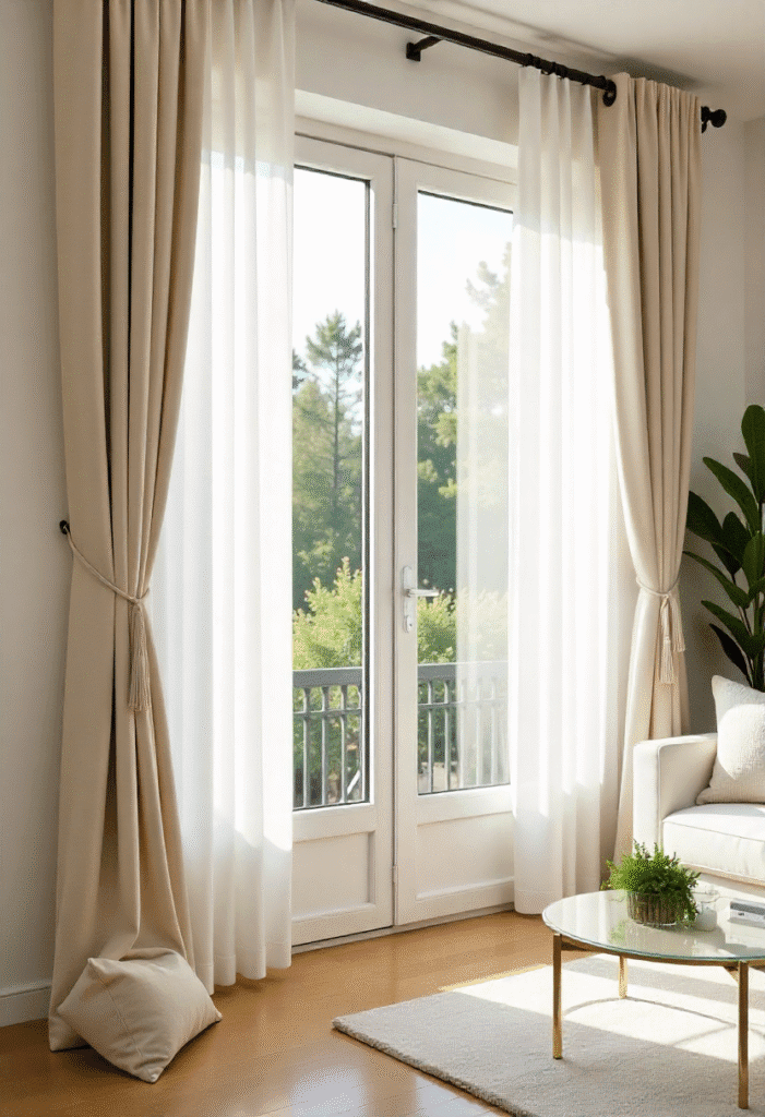 - Measure right: Curtains should be 1.5–3 times wider than your rod for fullness. Hang high and wide.