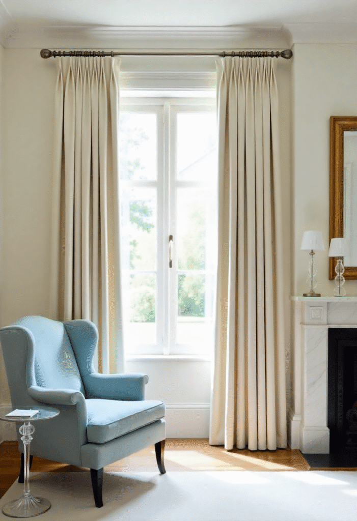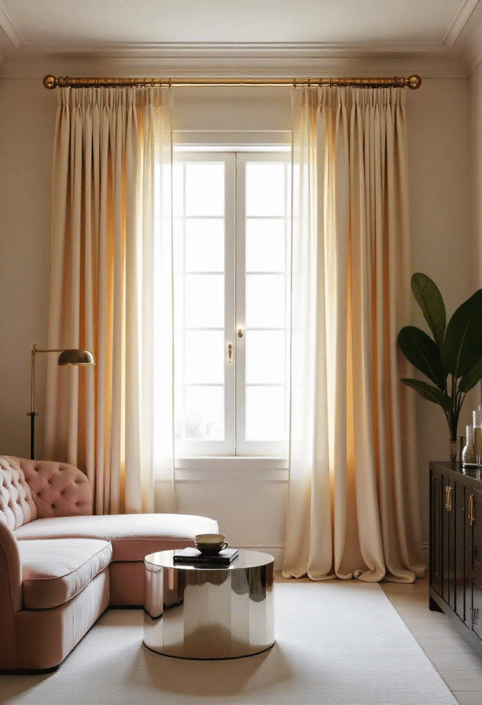 Cream curtains with gold or silver threads add a hint of sparkle without overdoing it.