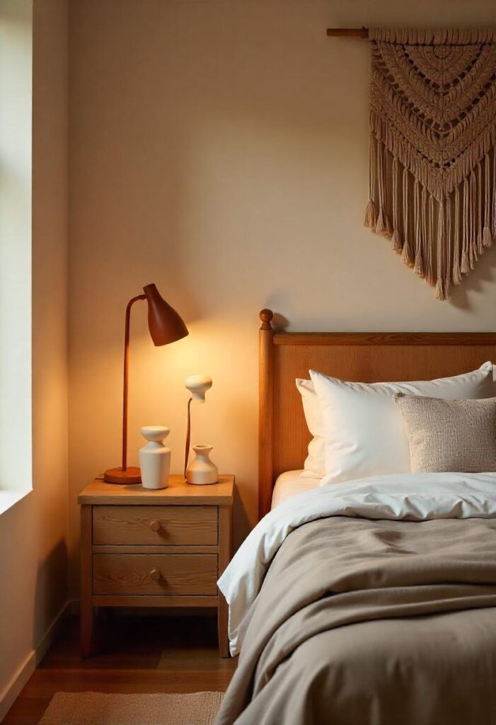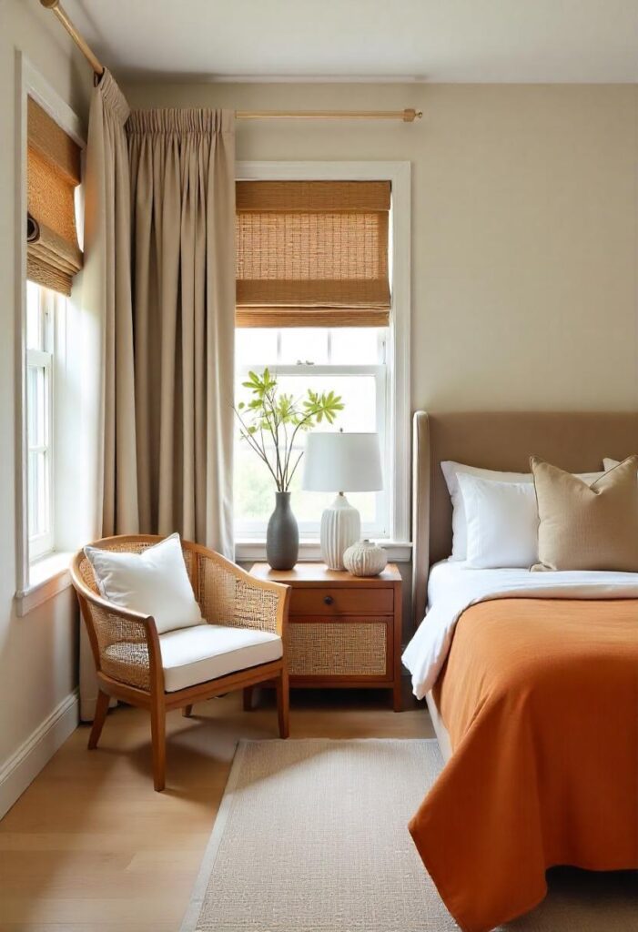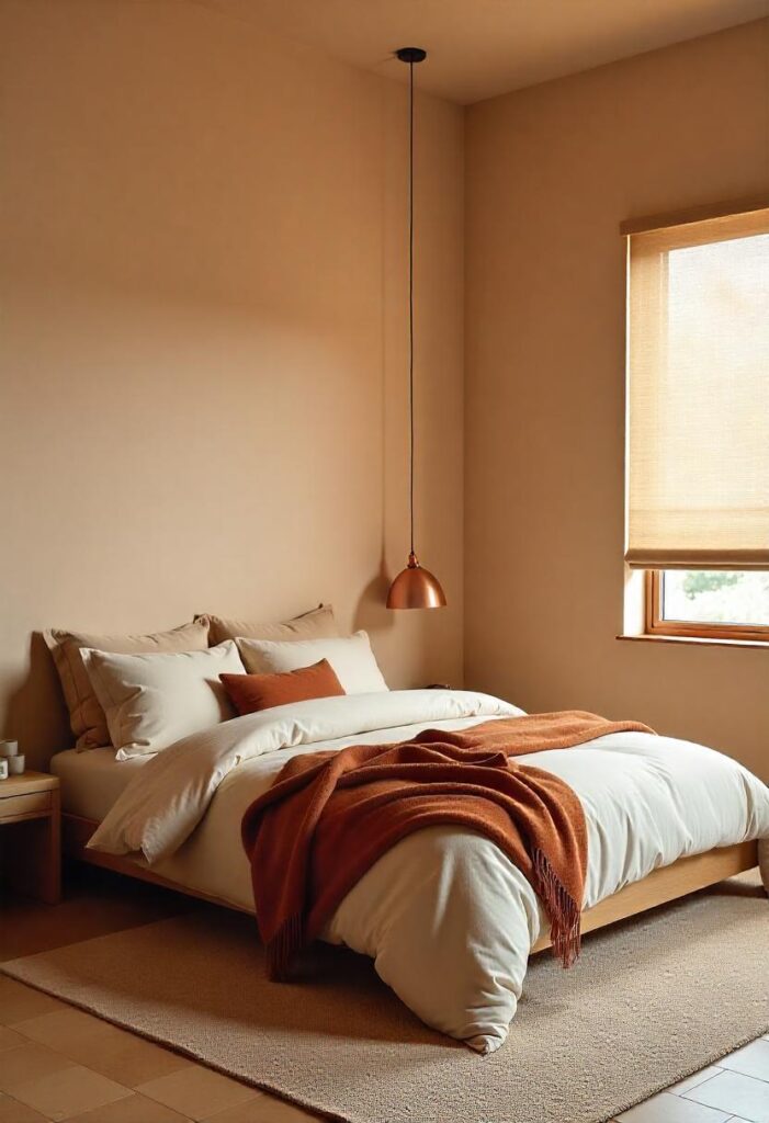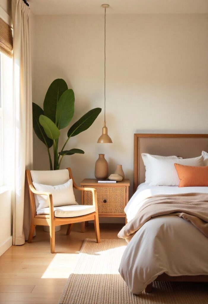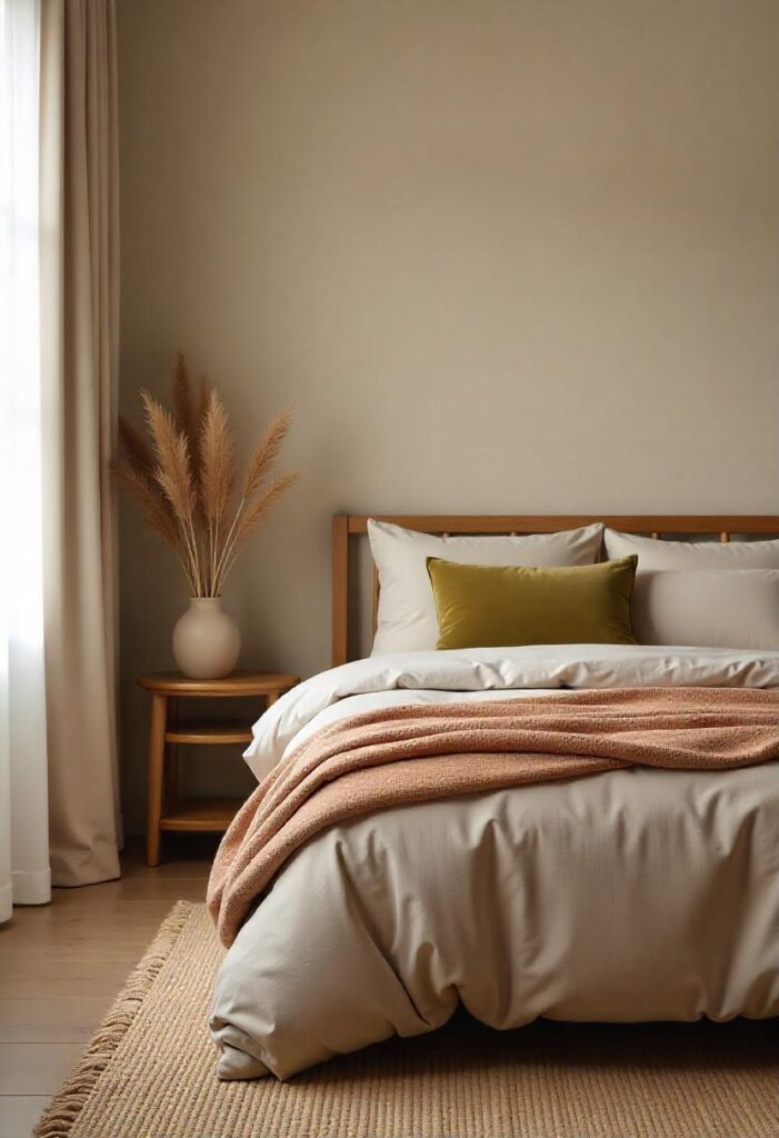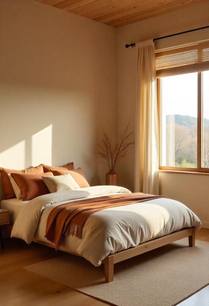 10. Japandi-Inspired Earthy Bedroom with Minimal Layers