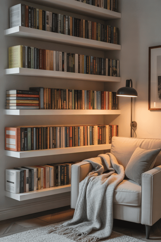 If you’re an avid reader, your cozy corner should include a space dedicated to books. Incorporate shelves or a small bookshelf to hold your favorite novels, memoirs, or poetry collections. Organizing your books in a way that is both functional and visually pleasing adds a personal touch to your corner. You can group books by color, size, or genre for an aesthetically pleasing effect. Keep a few books within easy reach, perhaps stacked on the floor beside your chair or within an arm’s length on a side table. The addition of a book nook invites you to escape into your favorite stories, making the space even more inviting.