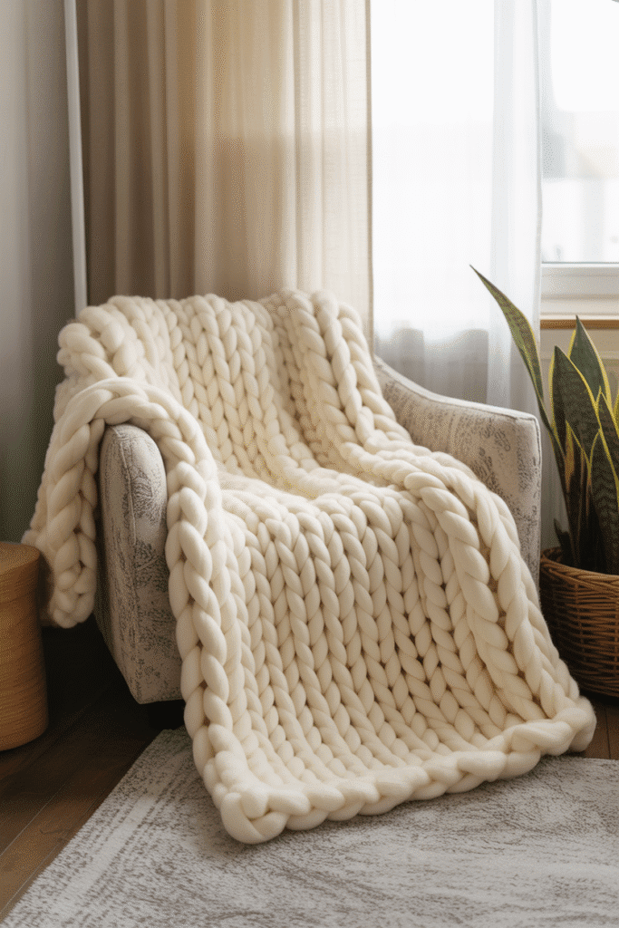 No cozy corner is complete without a soft throw blanket to curl up under. A throw blanket provides an immediate sense of warmth and comfort and is perfect for chilly evenings or when you need extra coziness. Choose a blanket that complements your corner’s decor, whether it’s a chunky knit, soft fleece, or a weighted blanket for added relaxation. Keep your throw draped over a chair, or fold it neatly on a side table for easy access. Not only does it enhance the warmth of the space, but it also adds texture and color that enhances the overall coziness of the area.