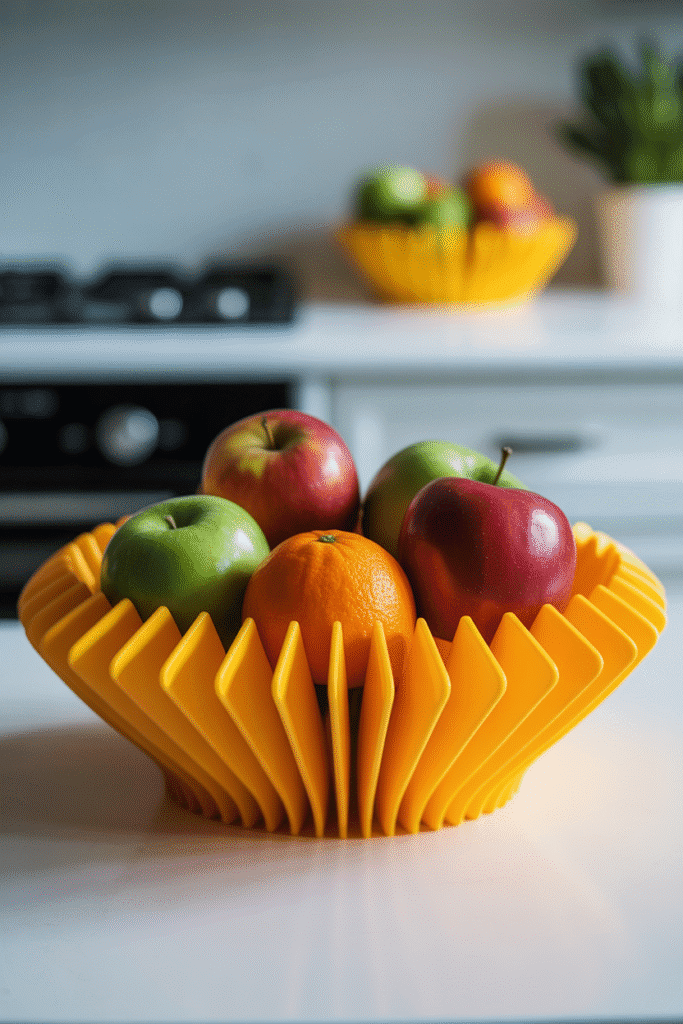 This is not just decor, it is a conversation piece. 3D print a fruit bowl that expands like an accordion when in use and collapses flat when you want to save space. It works especially well in small kitchens or minimalist setups where counter space is limited. Use flexible filament and add a locking mechanism to keep it open when needed. Print it in bright colors like yellow or green to make your fruit look even fresher. It is playful, practical, and stylish.
