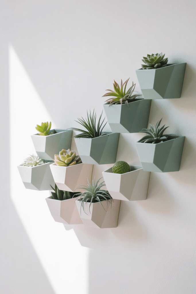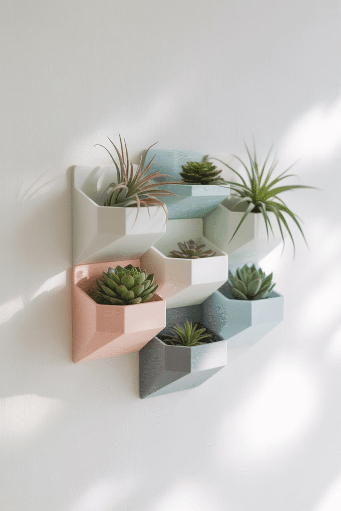 Forget bulky ceramic pots. 3D printed wall planters offer a sleek, contemporary option that works even in small apartments. You can design them as modular hexagons or triangular pockets that connect into a larger mural-style arrangement. They are light enough to be mounted with adhesive strips, making them renter friendly. Use multiple colors or stick with white for a clean Scandinavian vibe. Add small succulents or air plants to complete the look without worrying about drainage concerns.