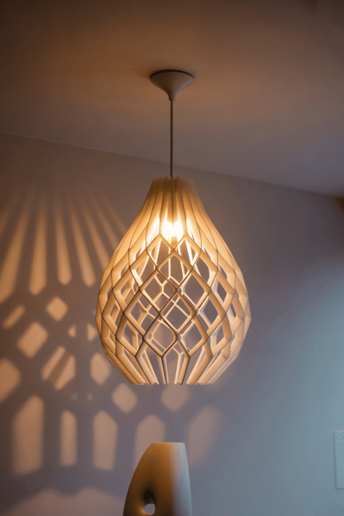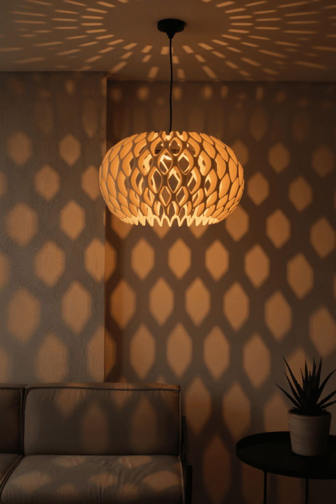Lighting is all about layers, and the lamp shade can be the star if done right. 3D printed lamp shades let you play with structure and shadow. Print one with a honeycomb pattern or a lattice that scatters light across the ceiling. Use heat resistant PLA or PETG filament and make sure to use LED bulbs to keep things cool. These shades work beautifully as desk lamps, pendant lights, or night lights. You can even scale the design up or down based on the size of the base.