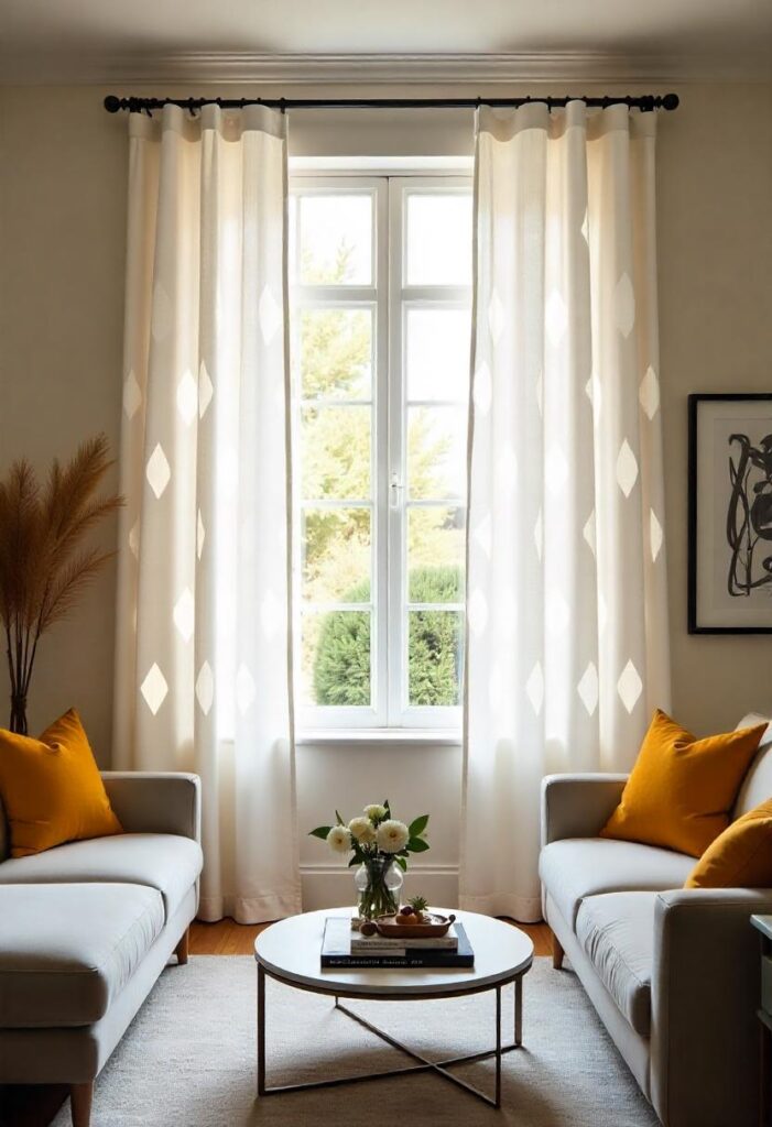 Featuring precise shapes cut into solid fabric, these curtains cast patterned light throughout the day. The designs are usually modern and clean-lined. Often chosen for minimalist spaces in need of a visual accent. When light passes through, the curtain becomes interactive. The patterns appear soft, not harsh, even in full daylight.
