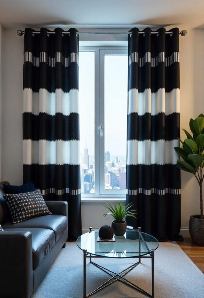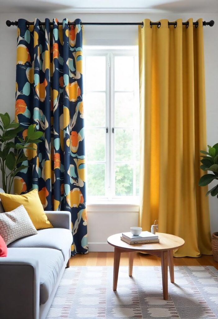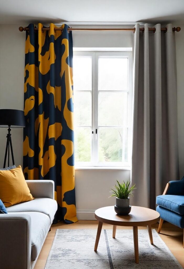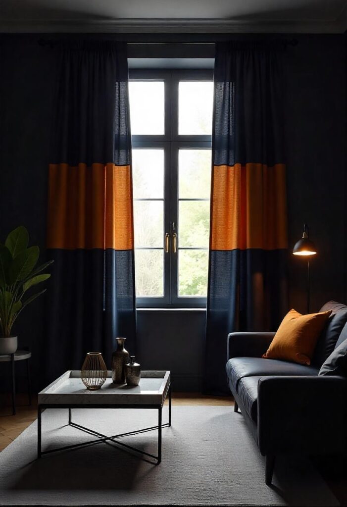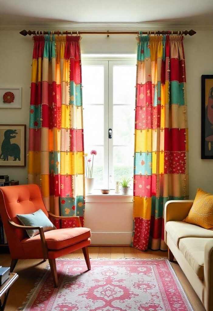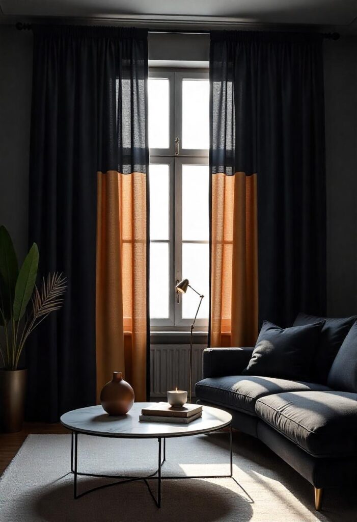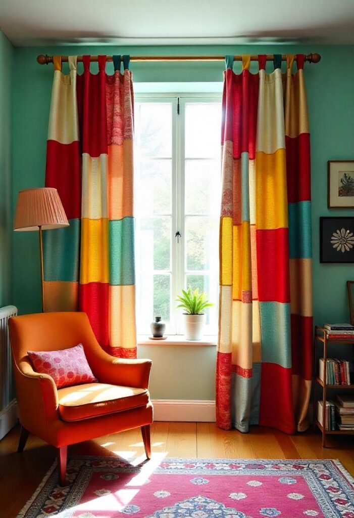 These curtains incorporate multiple fabric blocks in complementary tones or prints. The segmented design brings energy and movement to the space. Used correctly, they can act as a primary visual element. Best positioned near neutral walls or simple furnishings. The variety in material creates subtle depth in daylight.