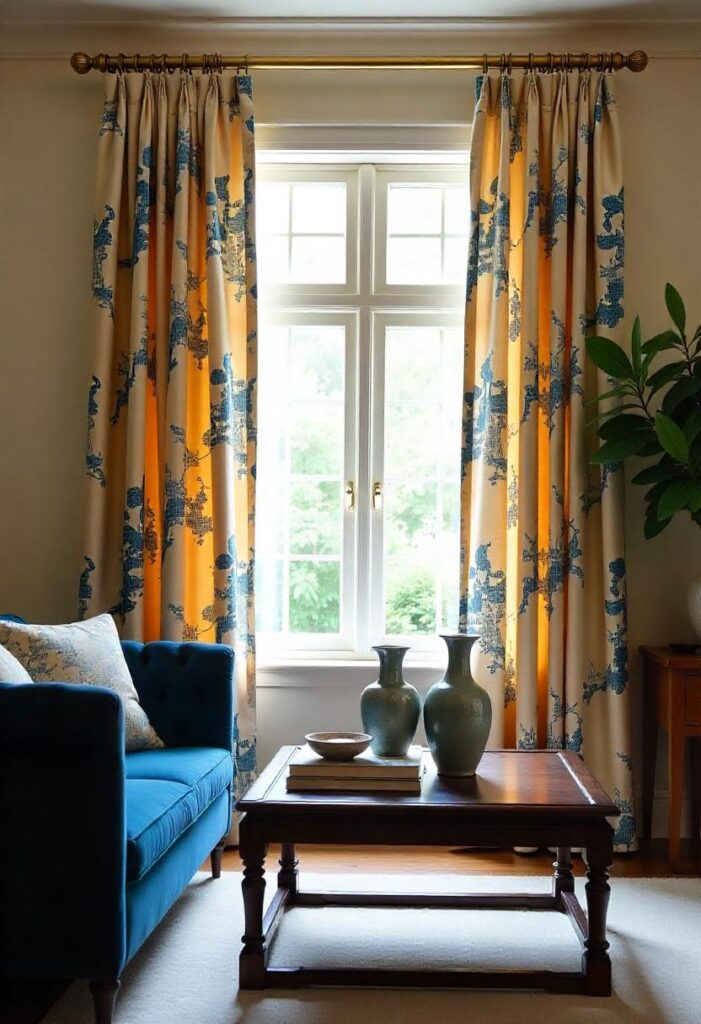 Inspired by historical Eastern motifs, these printed panels bring intricate design to window dressing. Patterns may include florals, birds, or stylized scenes. They work well with refined wood furnishings and classic upholstery. These drapes hold visual weight and often set the tone for the room. Best used in spaces where detail is appreciated.