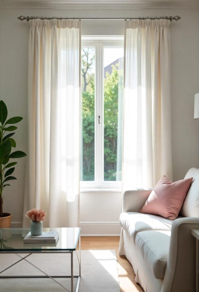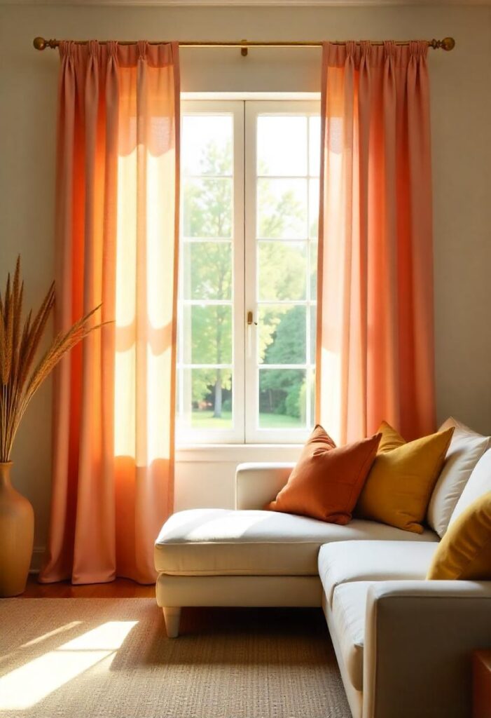 Linen panels in delicate pastel tones create a calm visual rhythm. They work particularly well in spaces with warm light or light-toned walls. The fabric carries subtle texture and drapes elegantly. These curtains complement contemporary and transitional interiors. They add warmth and refinement without drawing too much attention.