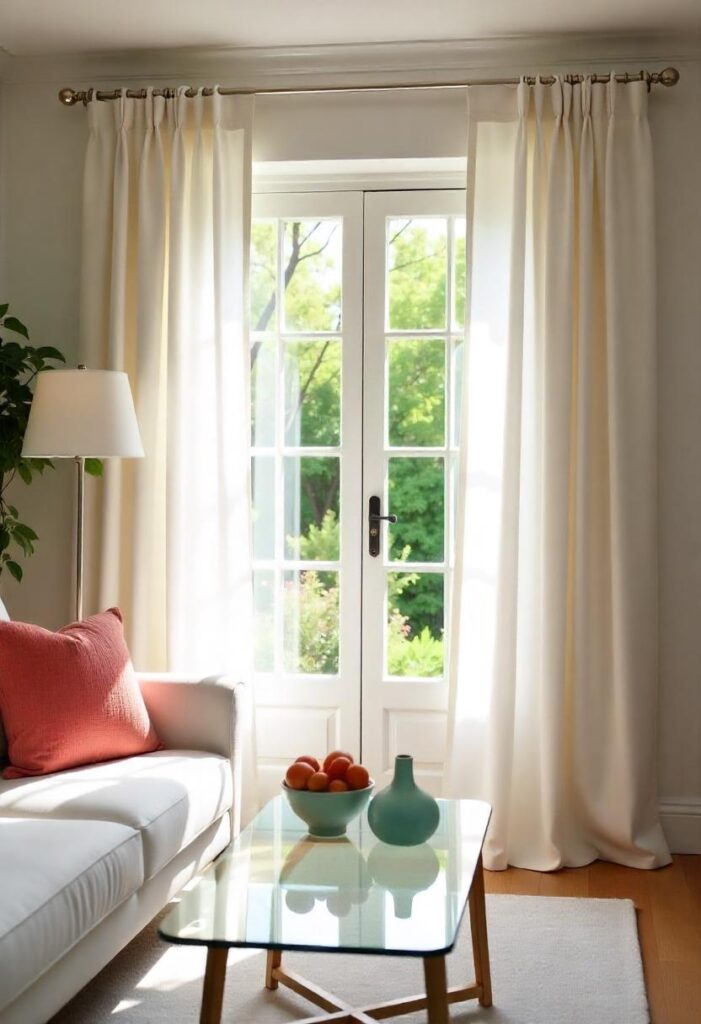 Sheer-lined curtains combine transparency with subtle coverage. The inner layer filters harsh sunlight while maintaining a soft outward appearance. They’re commonly selected for rooms with strong afternoon light. Their design allows layered draping without bulk. The result is a clean, elegant look that handles light with finesse.