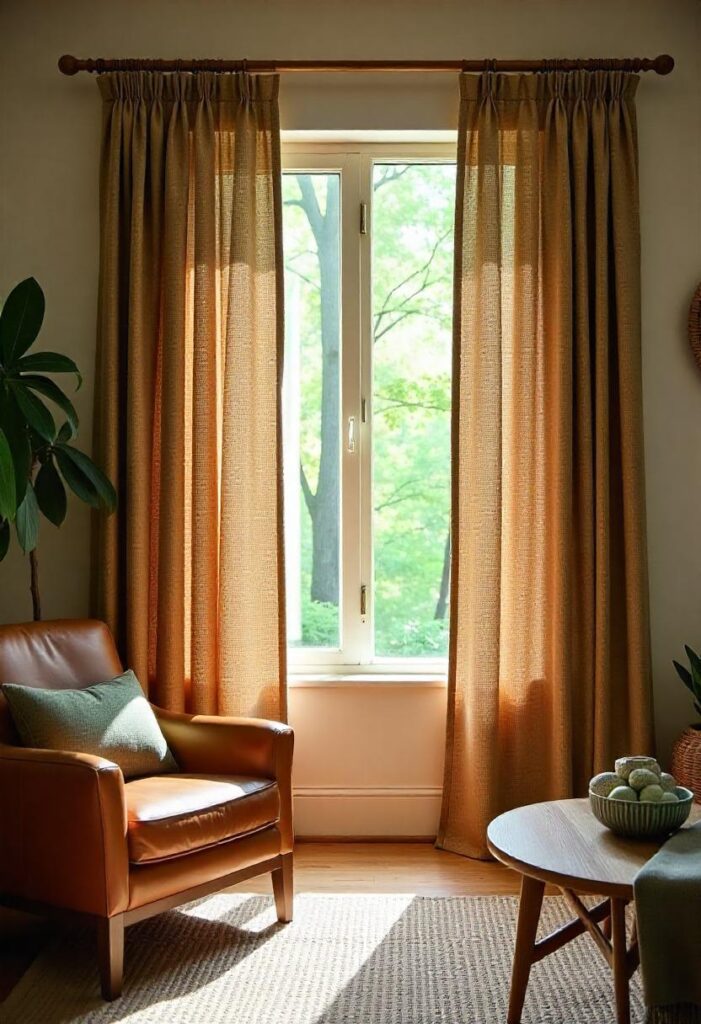 This style uses thick, woven fabrics that bring surface texture to an otherwise smooth room. The palette often reflects natural tones like clay, stone, or grain. Suitable for spaces where color restraint is preferred. These curtains serve as grounding elements for light or minimal décor. They hold their form well and add visual stability.