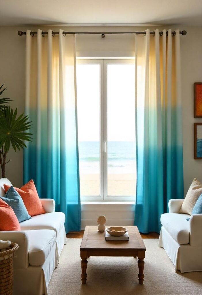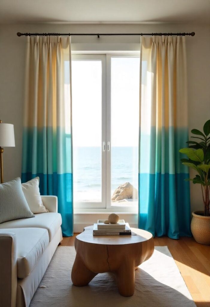 Gradient tones shift gently from top to bottom, creating a visual flow across tall windows. These curtains are often used in rooms with expansive vertical space. The soft transition of color draws the eye upward. They add movement without introducing pattern. Well suited for both tonal and contrasting interiors.