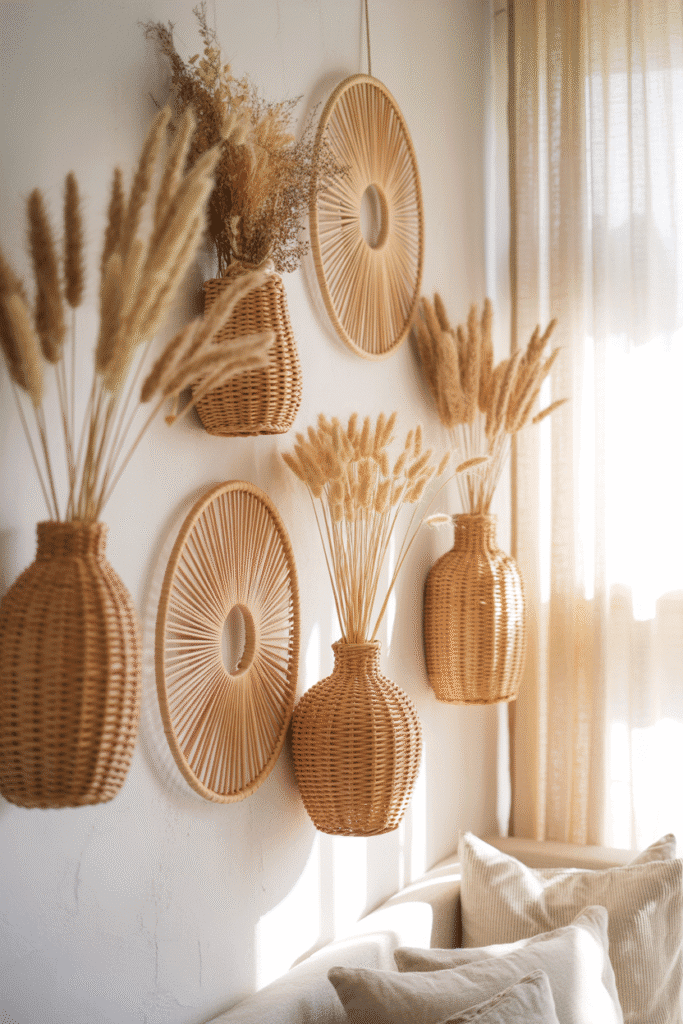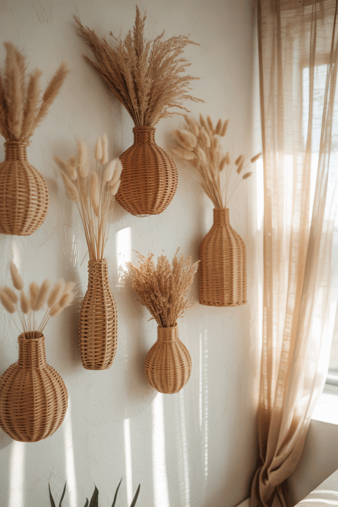 8. Use Wicker or Rattan Wall Vases for a Natural Look