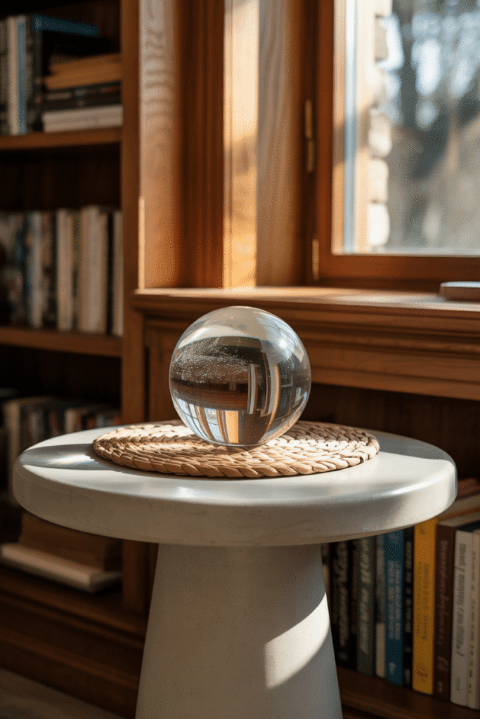 10. Feature a Clear Quartz Sphere on a Pedestal Stand
