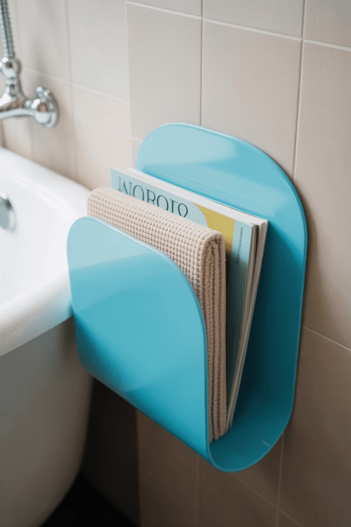 Mount this near your tub for both storage and style. Choose one in a curved or minimal design to avoid the look of an office file holder. Fill it with waterproof magazines, a folded towel or even a small notebook. The robin egg blue color brings in playfulness without losing sophistication. It becomes a conversation piece while staying incredibly useful. Sometimes function can be soft and beautiful.