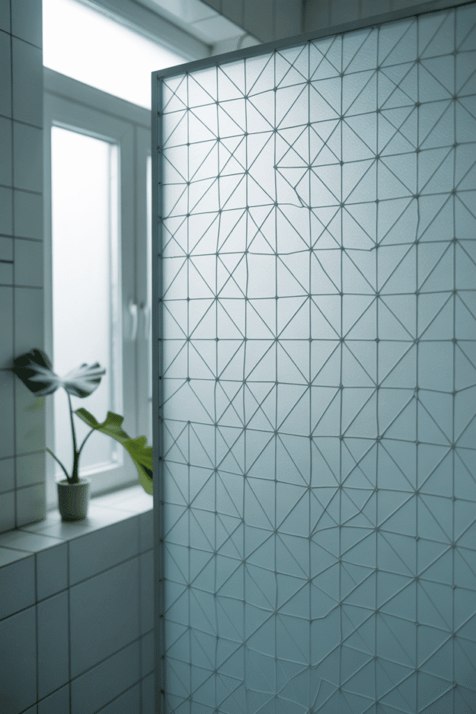 Apply this to windows or glass shower panels where you want privacy without blocking light. Frosted blue softens direct sun and creates a dreamy glow. Choose a subtle pattern like triangles or broken lines to add visual interest. The effect is like sunlight passing through water. It keeps the room feeling open and clean. A small detail like this can completely shift the mood.
