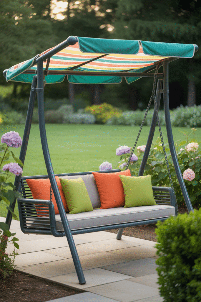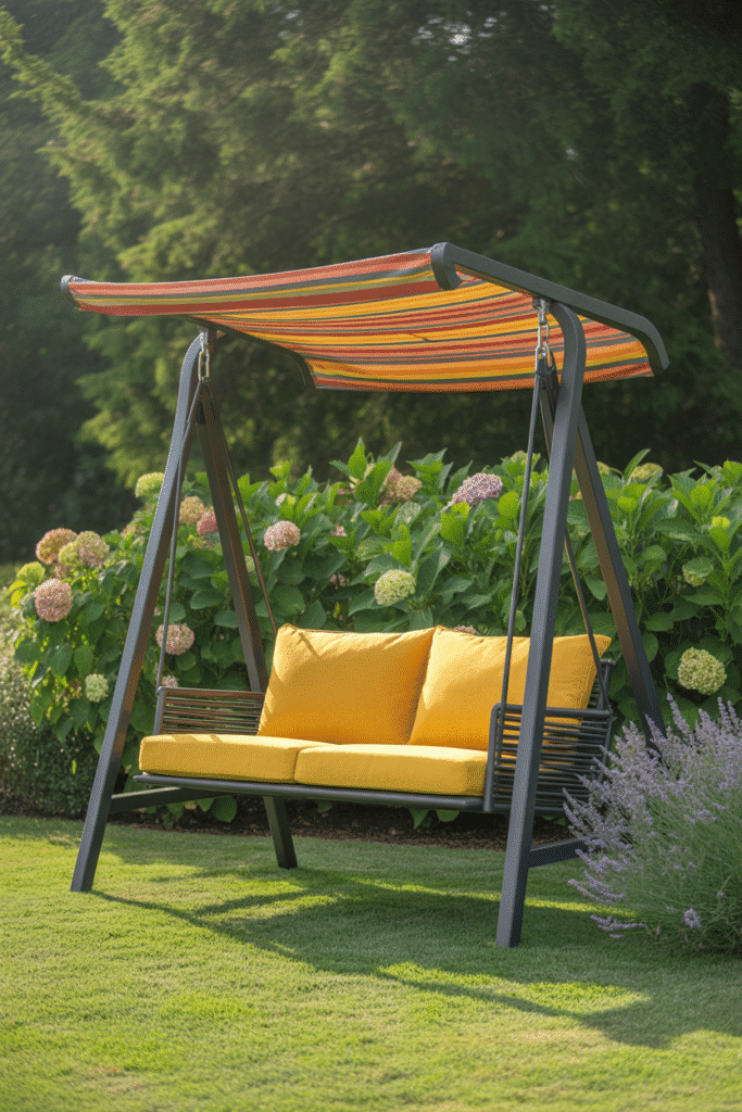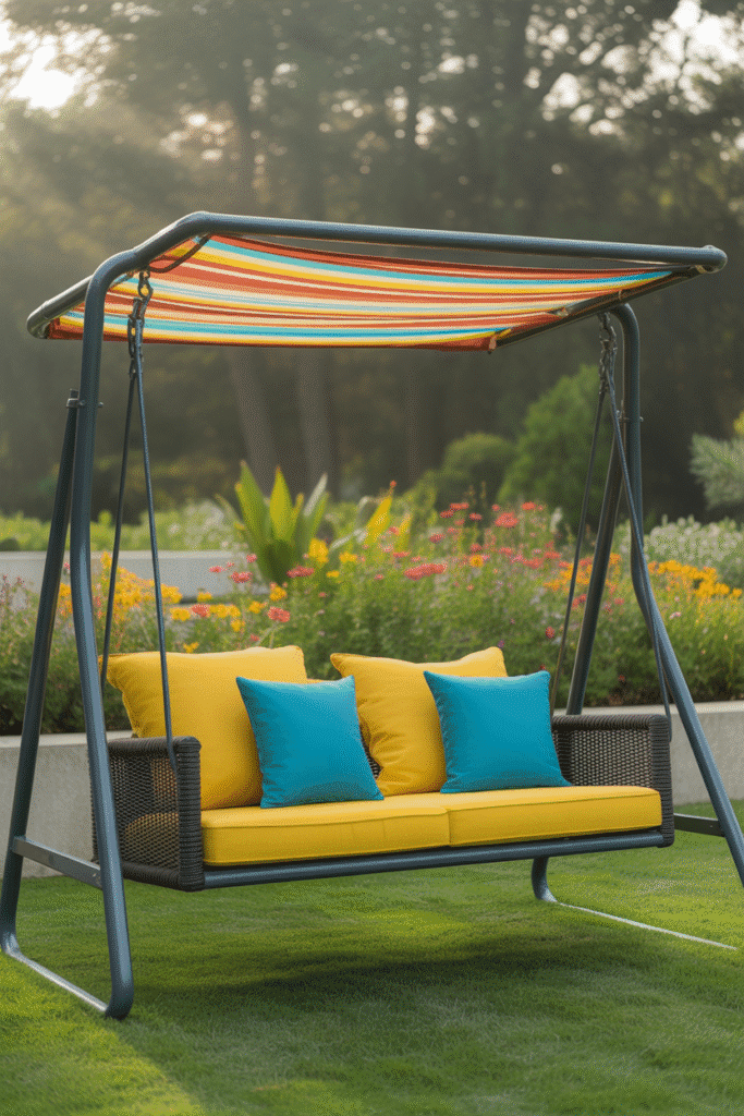 A canopy swing is both stylish and practical, especially if your backyard gets a lot of direct sun. The built-in shade allows you to enjoy long afternoons outside without worrying about overheating. Many models come with adjustable canopies, so you can tilt them as the sun moves. Choose a canopy swing with colorful fabric or a bold pattern to make it the focal point of your outdoor area.