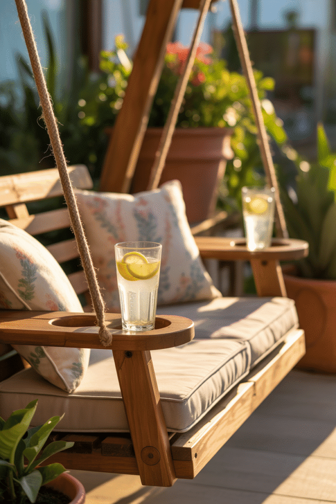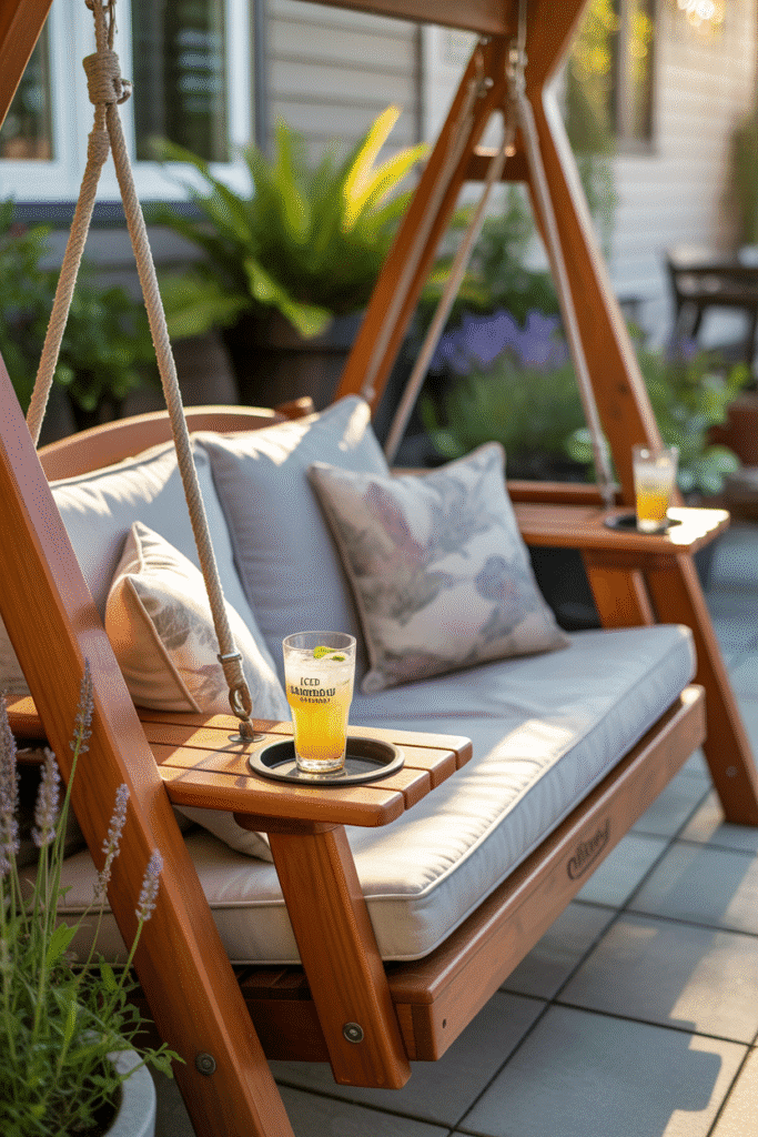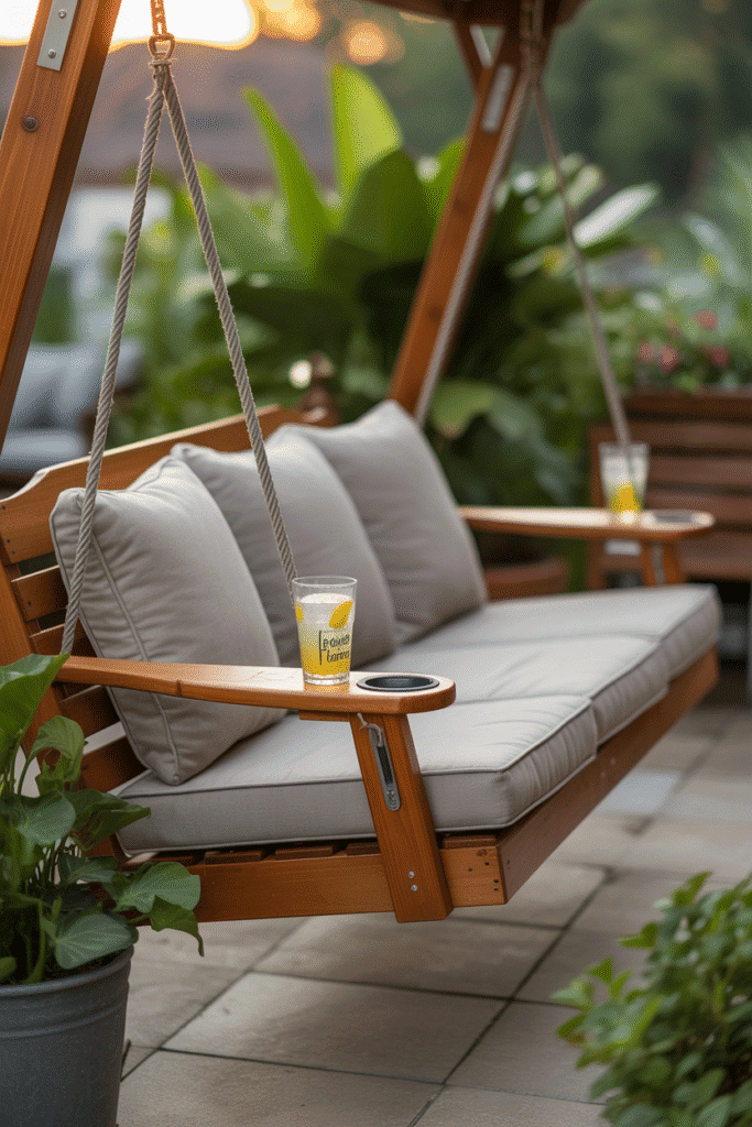 For those who love entertaining, a swing with built in cup holders is both functional and stylish. You can keep your drink within reach while you sway gently in the evening breeze. Many designs also offer small trays for snacks, making them ideal for gatherings. It is a simple addition that adds convenience without compromising style.
