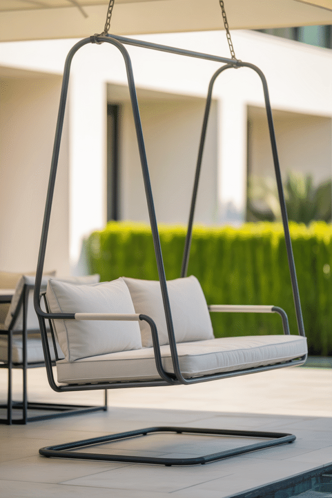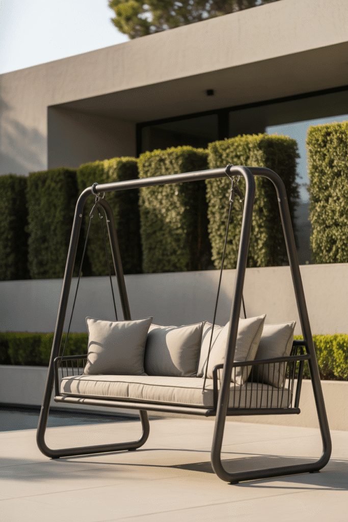Metal frame swings are a great choice if you love modern or industrial style. The clean lines and sturdy structure make them look sleek and contemporary. Powder-coated finishes help protect against weather, ensuring they last for years. You can soften the look with plush seating cushions or keep it minimal for a bold architectural effect.