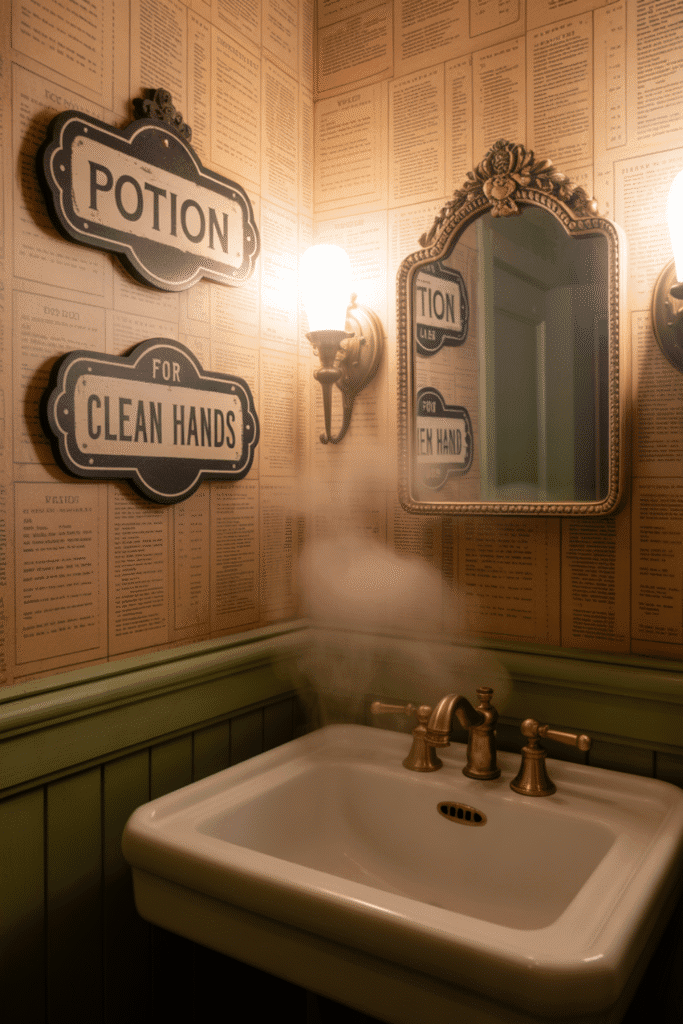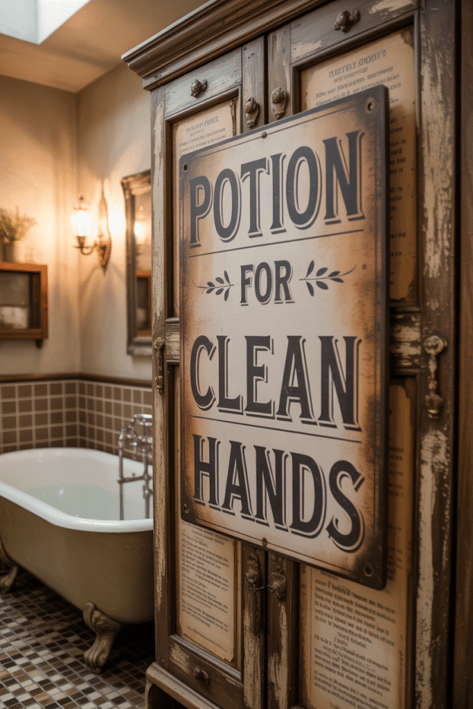 Create signs that mimic antique medicine bottle labels. Include phrases like Potion for Clean Hands or Elixir of Freshness. Use aged paper and vintage fonts for authenticity. This approach is perfect for anyone wanting a timeless and apothecary style aesthetic.