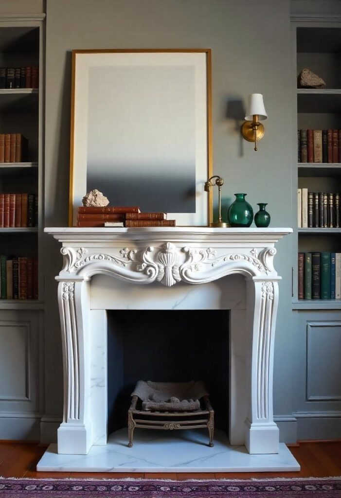 Even if you don’t have a working fireplace, an antique mantel can be a strong decorative anchor. Place one in a living room, study, or hallway and use the interior space as a shelf for books, ceramics, or artwork. A stone or marble mantel offers formality, while a simpler wooden one adds warmth. This approach gives historical architecture a new purpose without needing a full renovation.