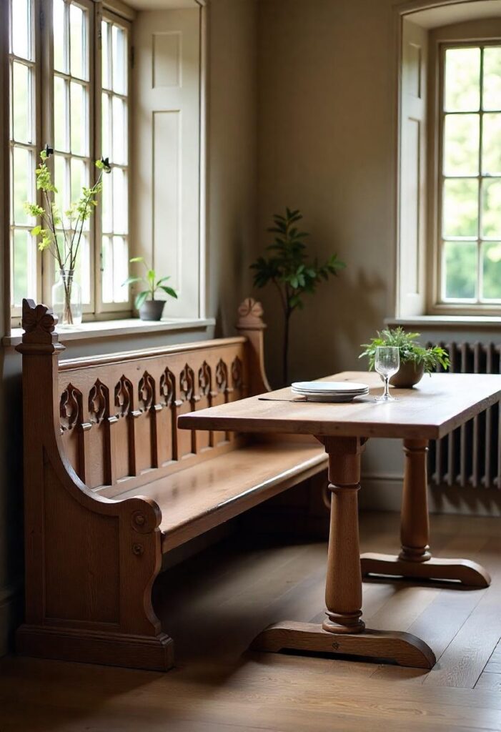 Old church pews can be used as benches in dining areas, mudrooms, or entryways. Their sturdy design makes them functional, and the shape adds a touch of tradition. Some come with original hymn book slots or carved details that are worth preserving. If the wood feels too dark, a light coat of paint can soften the look while keeping the form intact.