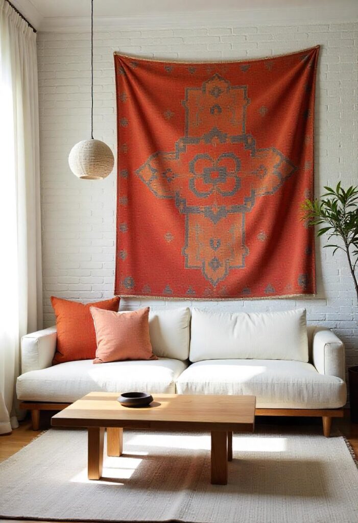Old rugs don’t need to stay underfoot. An antique Persian or Oriental rug becomes a piece of textile art when hung on the wall. Faded colors and traditional patterns offer depth without overwhelming the space. This works particularly well in rooms with neutral palettes, where the rug becomes the focal point. Choose one with soft, aged tones to blend easily or go bold if the rest of the room is simple.