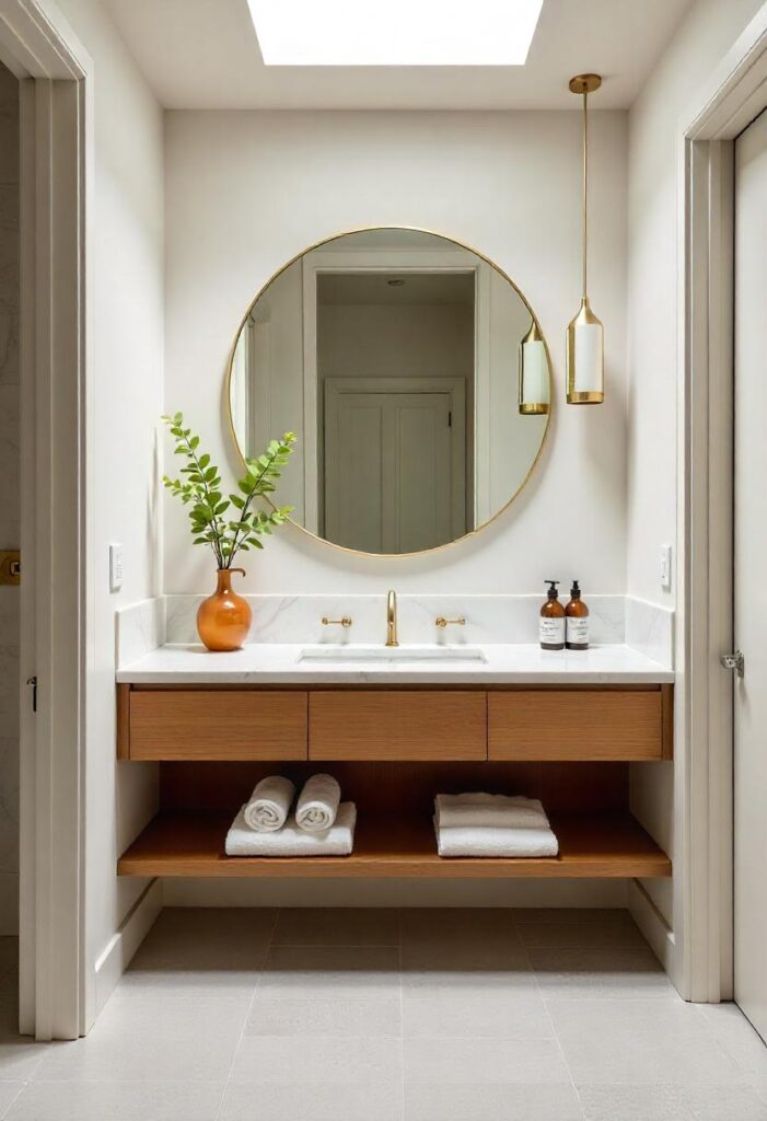 Turn your bathroom into a personal retreat with thoughtful material choices. The combination of warm woods, natural stone, and soft textiles creates a soothing environment. Heated flooring extends the luxurious feel through colder months. Strategically placed mirrors amplify both light and the sense of space. It’s ideal for transforming utilitarian spaces into areas of relaxation. The luxurious yet simple details make daily routines feel indulgent. The right ventilation design ensures steam from showers dissipates quickly without dampening the serene atmosphere.