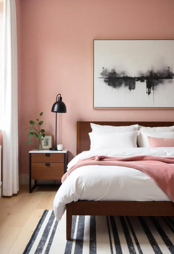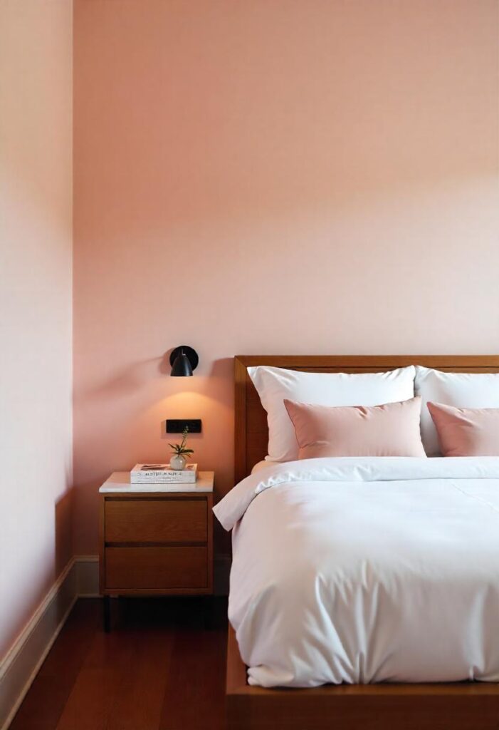 A blush tone with clay or peach undertones offers a refined and modern look. It feels balanced when used alongside dark wood or black accents. Keep the color contained to one or two surfaces. Add visual weight with natural rugs and minimal artwork. Suitable for both modern and traditional interiors. Works well in rooms with medium to low light.