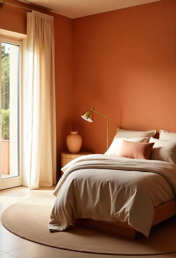 Terracotta brings a sun-baked warmth that feels inviting all year round. It pairs well with linen, cotton, and woven accessories. The tone is rich enough to feel layered without extra decoration. Add contrast with slim black metal frames or simple wood furniture. Works best in cooler or shaded rooms. Use neutral textiles to keep the color in focus.