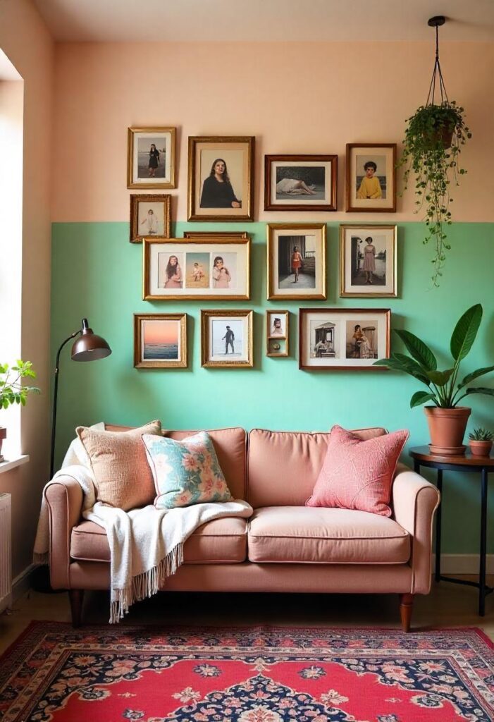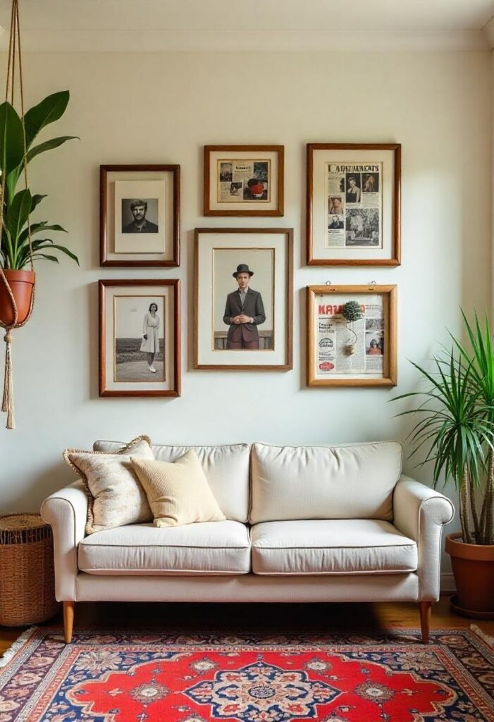 10. Wall-Mounted Magazine Rack with Vintage Frames
