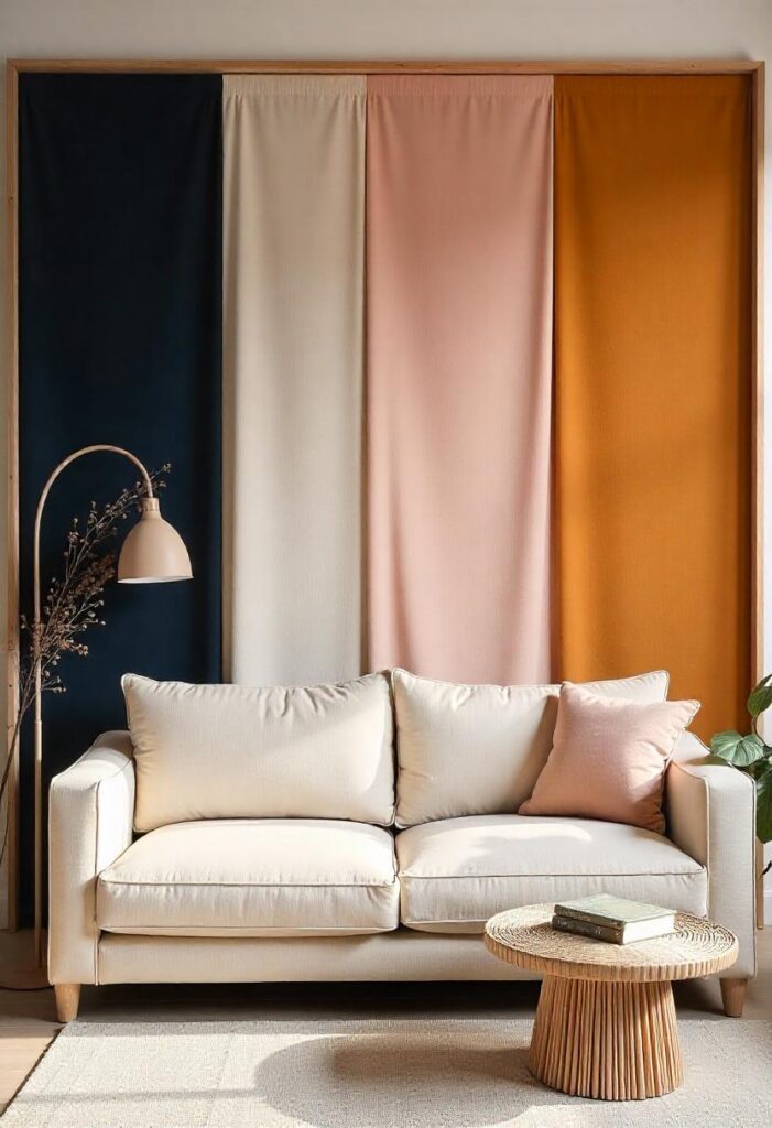 Framed fabric panels offer a way to introduce patterns or color blocks without painting. Use wood or metal frames to stretch fabrics such as velvet, canvas, or patterned cotton. Arrange the panels symmetrically or in a staggered format. This method allows easy seasonal or thematic changes. Coordinate fabric tones with key elements in the room. Staple guns and mounting hooks are the usual installation tools.
