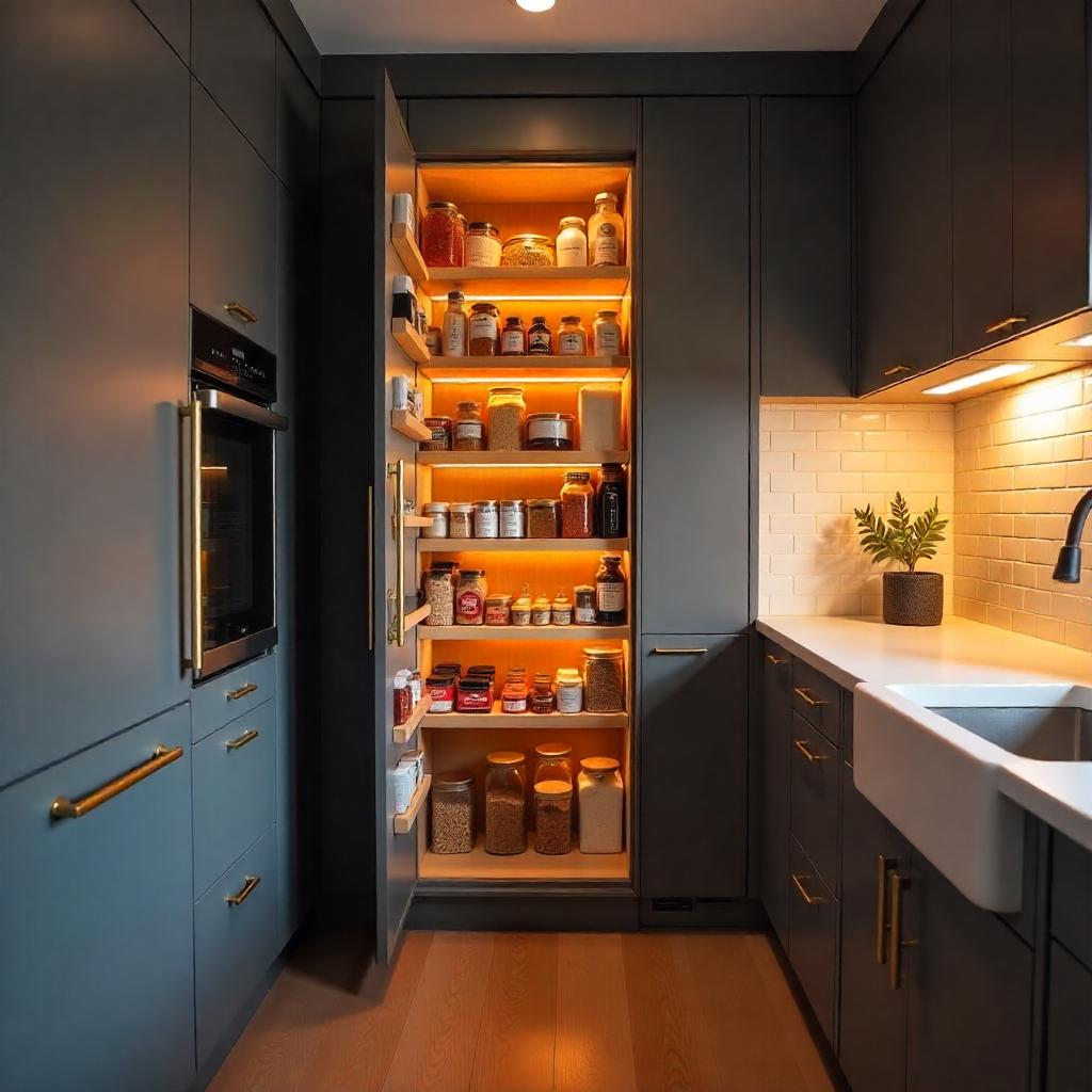 A slim pull-out pantry is the ultimate storage solution for narrow spaces, offering a tall, discreet column of shelves tucked behind a single panel. It optimizes vertical space without taking up additional floor area, making it ideal for compact kitchens. This design allows for organized, accessible storage of spices, dry goods, and bottles. Its sleek profile maintains a clean look while dramatically improving functionality.