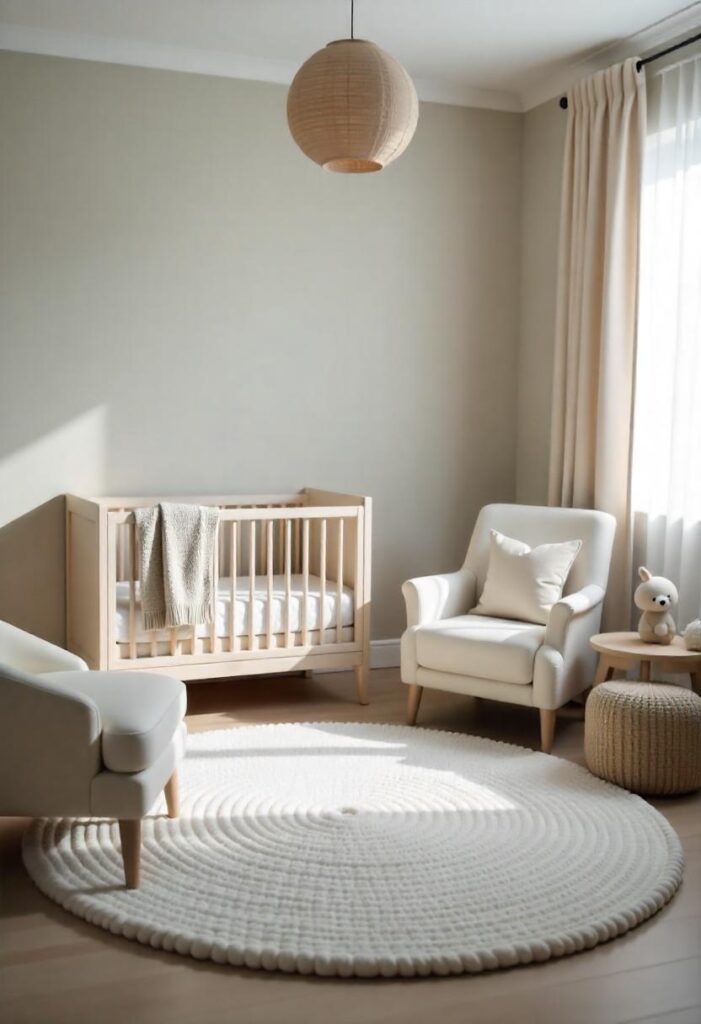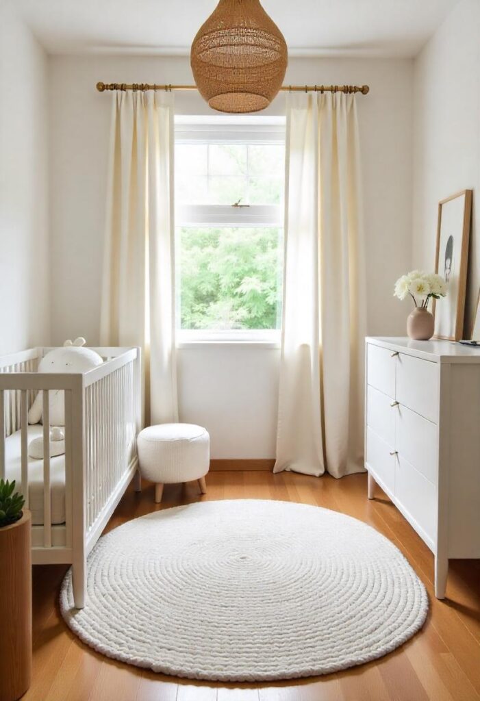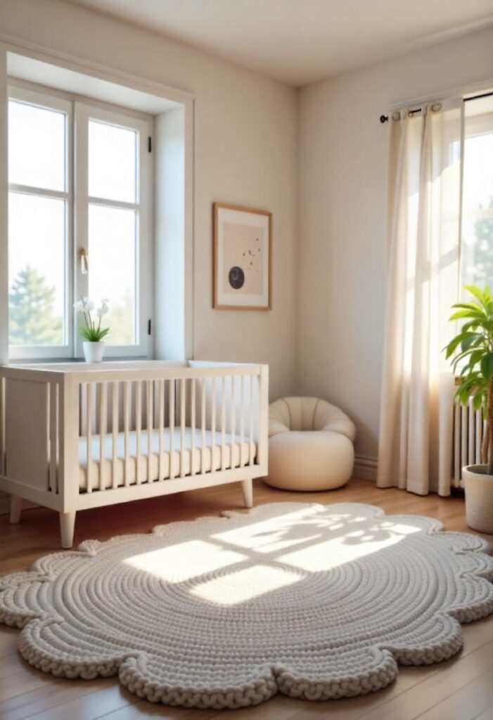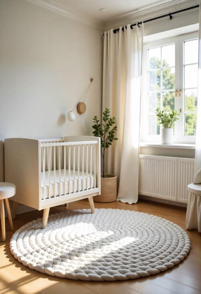 Knit rugs in neutral shades of ivory, cream, or soft grey offer both style and functionality. The softness of the knit texture makes it perfect for babies and toddlers who spend a lot of time on the floor. The gentle weave creates a comfortable and inviting atmosphere, while the neutral color ensures it pairs well with any theme. Knit rugs often come in a variety of designs, from braided to flatweave, offering flexibility in style. They are easy to clean, making them an ideal option for a nursery where spills and accidents are common. These rugs combine comfort with durability, ensuring long-lasting appeal.