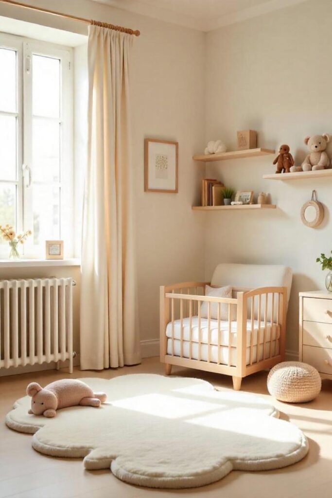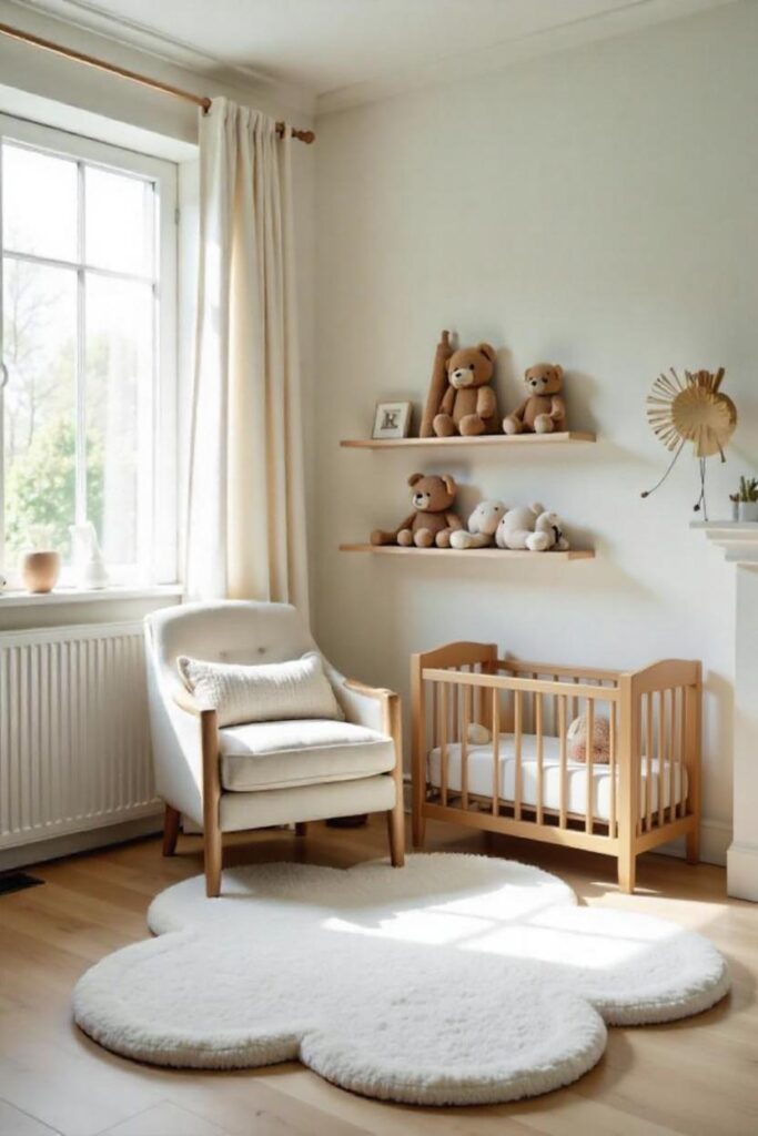 Cloud-shaped rugs add a playful touch while maintaining a neutral color palette. Opt for light shades like off-white, grey, or pale beige to ensure the rug complements other elements in the room. This design brings an element of fun to the nursery without clashing with minimalist or modern aesthetics. Soft textures make it perfect for lying down or playing, providing both comfort and charm. It’s ideal for parents looking to incorporate a subtle whimsy in the nursery. These rugs make a great choice for themed rooms or those that could use a bit of visual lightness.