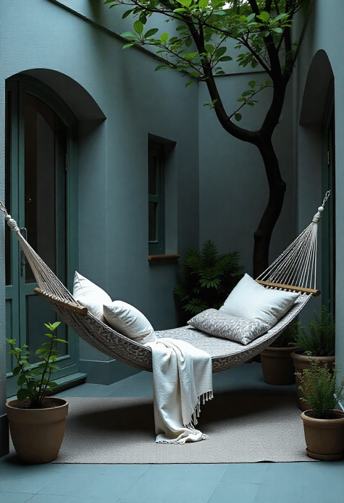 For ultimate relaxation, install a hammock or daybed in a cozy corner of your patio. Choose bohemian-style fabric, like cotton or linen, with intricate patterns or vibrant colors. Add a few pillows and a light throw blanket to complete the look. Hammocks and daybeds are perfect for lounging during the day or enjoying a quiet evening. Surrounded by plants and soft lighting, this setup will become the perfect retreat for anyone looking to escape and unwind.