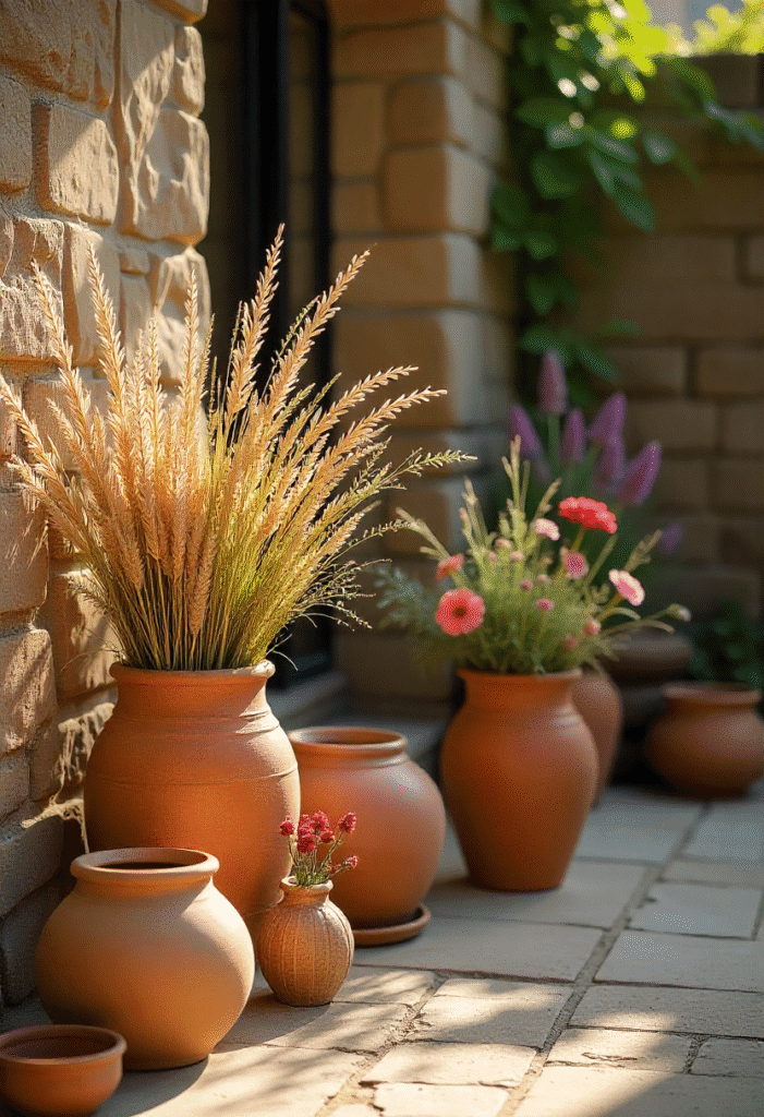 Handmade terracotta pots and vases are an essential element of any boho patio. These artisanal pieces add a touch of rustic charm and can be filled with a variety of plants, from succulents to wildflowers. Arrange them in clusters or place them individually around the patio. Their earthy tones will beautifully complement the natural wood, rattan, and other organic materials in your outdoor space.