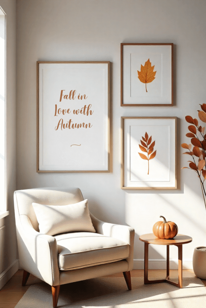 Swapping out artwork for fall-themed prints adds a subtle seasonal flair to your space. To create this look, hang prints of harvest quotes, leaf illustrations, or watercolor pumpkins in wooden or copper frames. A gallery wall above a console or in a hallway can create a cozy, seasonal vibe. For variations, print free designs online or add family photos with fall-themed overlays for a personal touch. To save on costs, reuse frames seasonally. These visual cues help promote relaxation and enhance the fall atmosphere. This project can be done within a budget of $20 to $50.