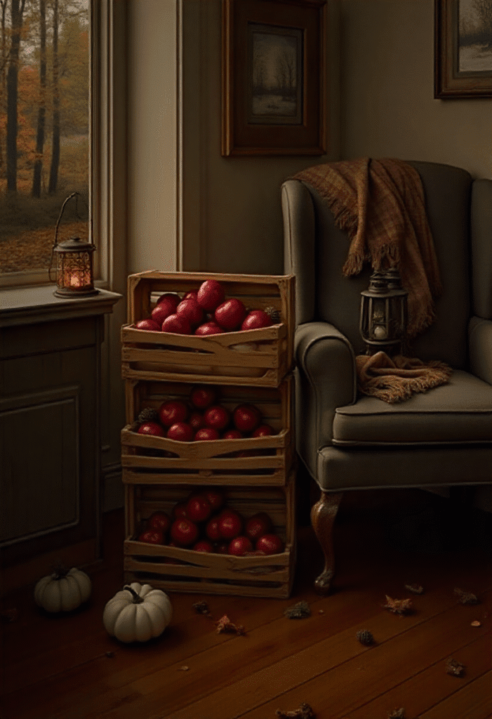 Crates offer a perfect blend of functionality and rustic charm. To create this look, stack vintage wooden crates to display apples, pinecones, or pumpkins in a living room corner or on a porch. For variations, paint the crates for a pop of color or repurpose them as storage once the season ends. For added authenticity, source crates from markets or antique shops. This project can be done within a budget of $10 to $40.